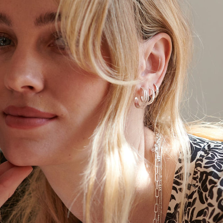Every good jewellery collection needs a go-to pair of hoops and these trusty huggies tick all the boxes. In 100% recycled sterling silver, they feature a twisted texture and a hinge closure.