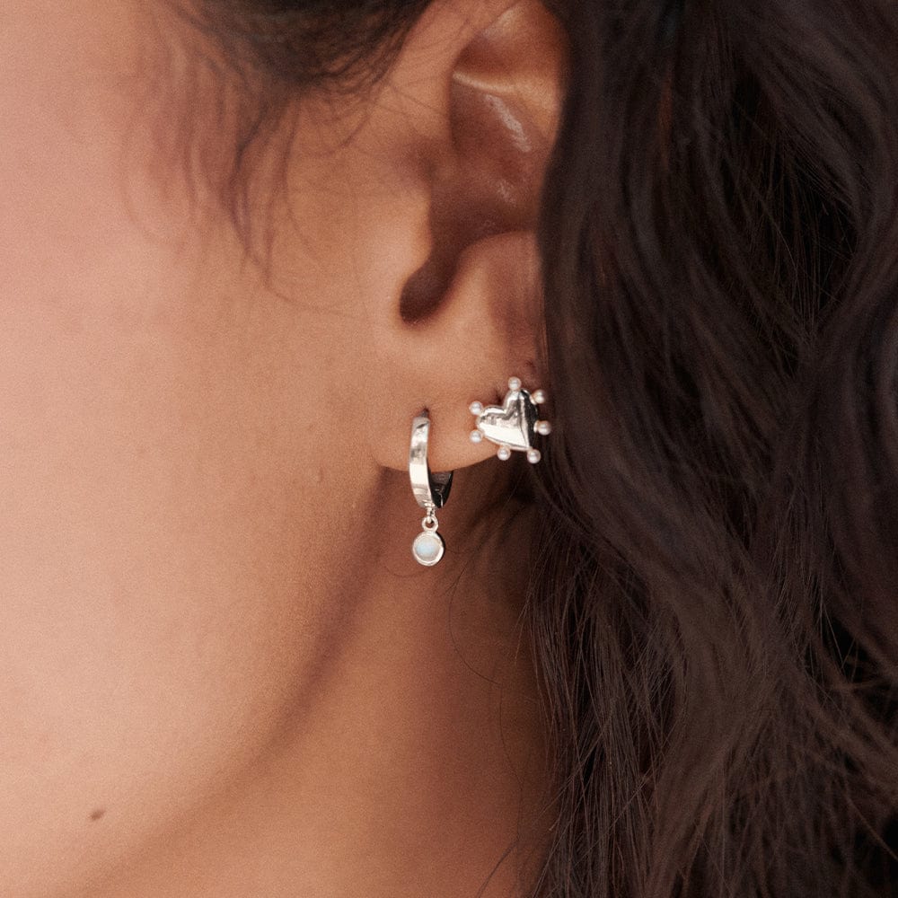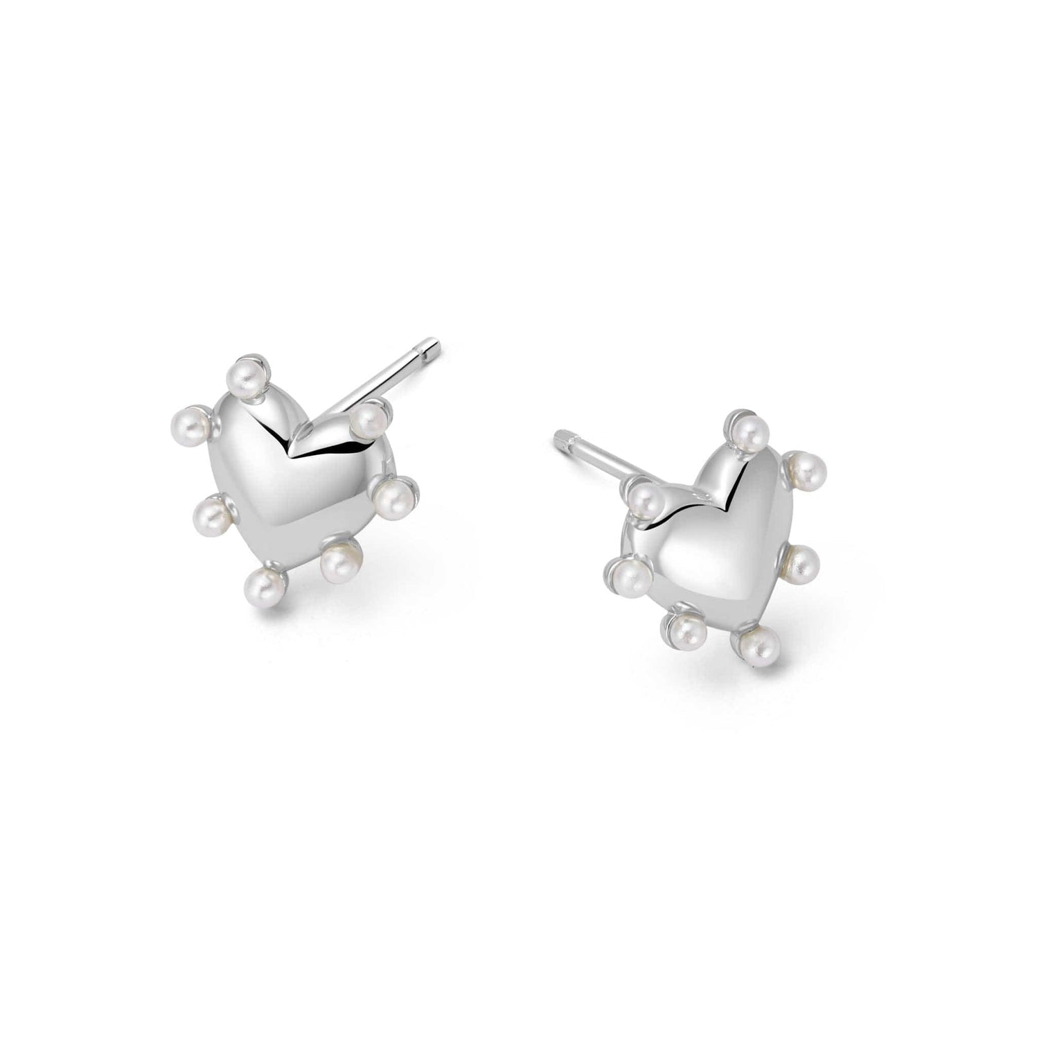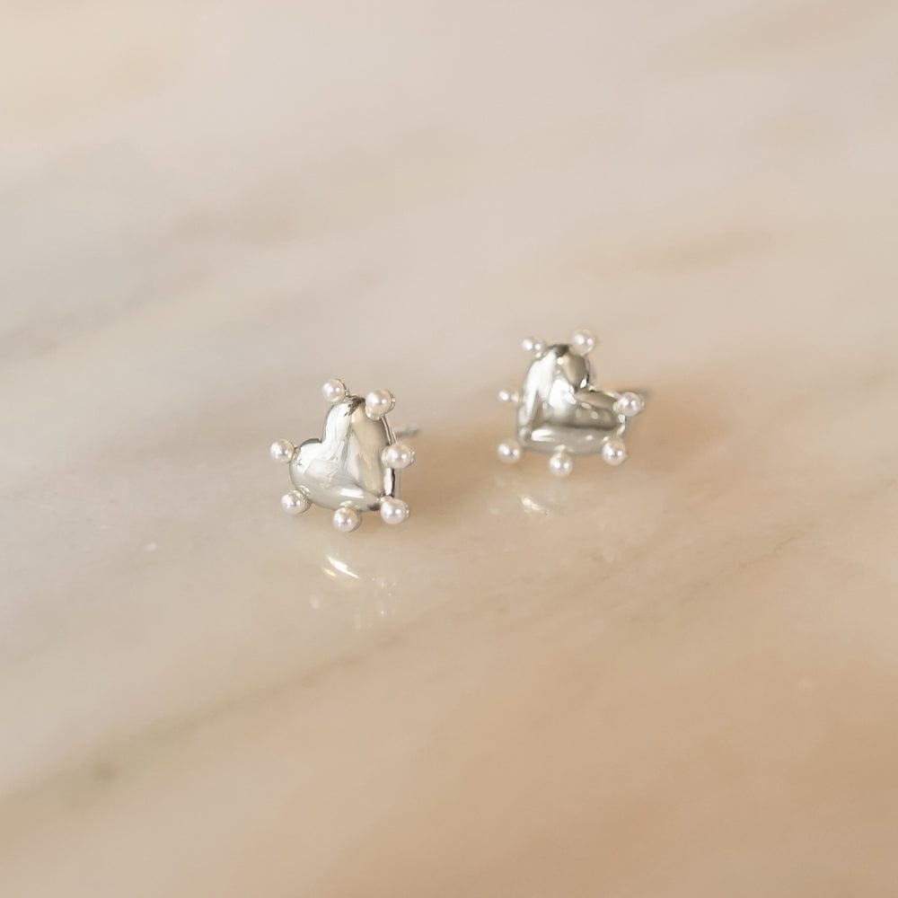 Wear your heart on your sleeve or on your ear stack with these mini heart studs incased in seed pearls. Perfect for date night or to add to your everyday look.