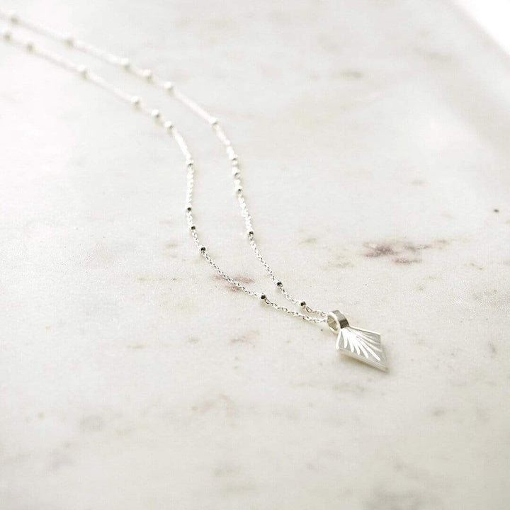 Not designed to blend in, this one is ready to collect compliments wherever you go. Featuring a palm engraved pendant on a 18' bobble chain with a 2' extender, this mid-length necklace looks just as good styled solo as it does layered with a your favourite chains or lengthier pendants.
