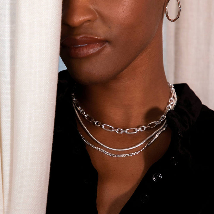 The Round Snake Chain Necklace will have you slinking your way from coffee to cocktails. Made from 100% sterling silver and 18ct gold plate this one will soon become your second skin. Subtle in style and smooth to touch, talk about effortless everyday cool.