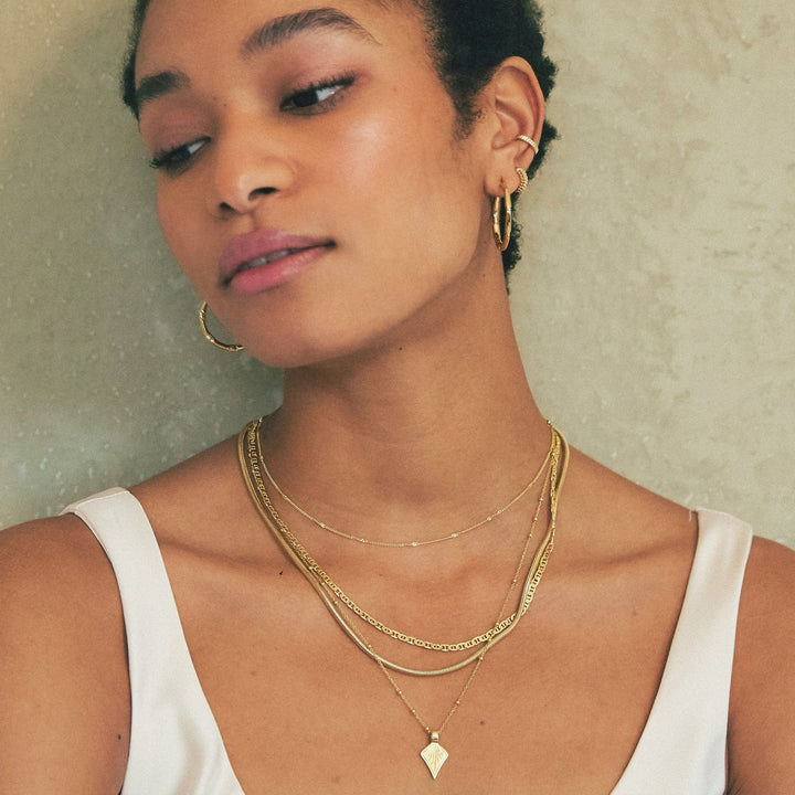 Meet the chain that's not like all the rest. Sitting at 18' it's the perfect base to build a stack around. Featuring flat intricate links made in 100% recycled sterling silver with 18ct gold plate, pair with a short chain and a long pendant for a layered look to love.