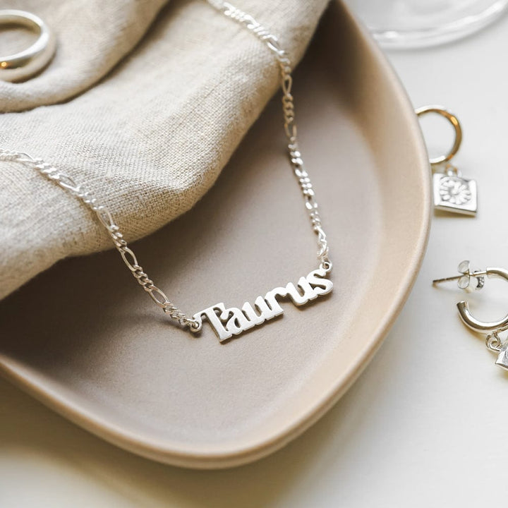 Find your connection with the other headstrong Taurus'. Hung on the iconic figaro chain and crafted in 100% recycled sterling silver, it's time to add some cosmic love to your everyday style.