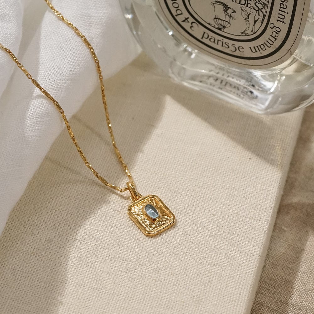 December Blue Topaz Birthstone Necklace 18ct Gold Plated