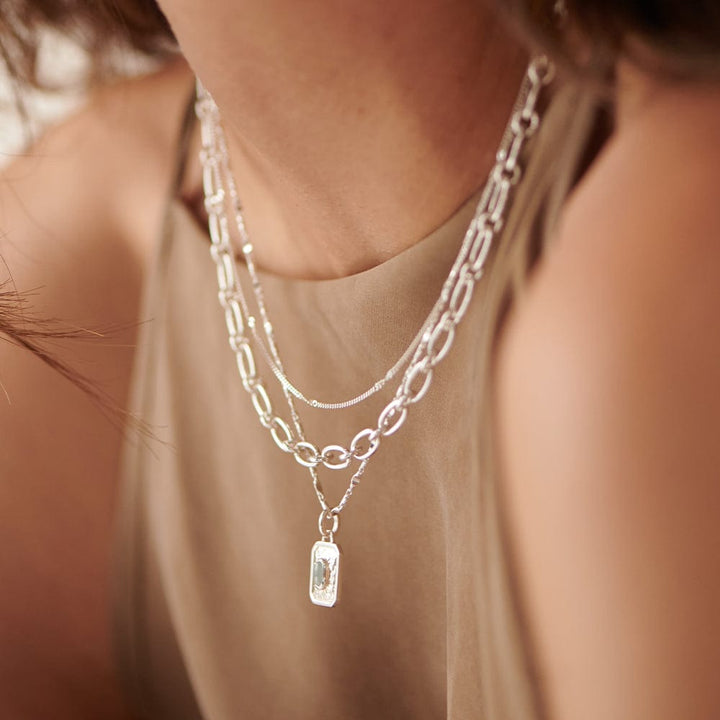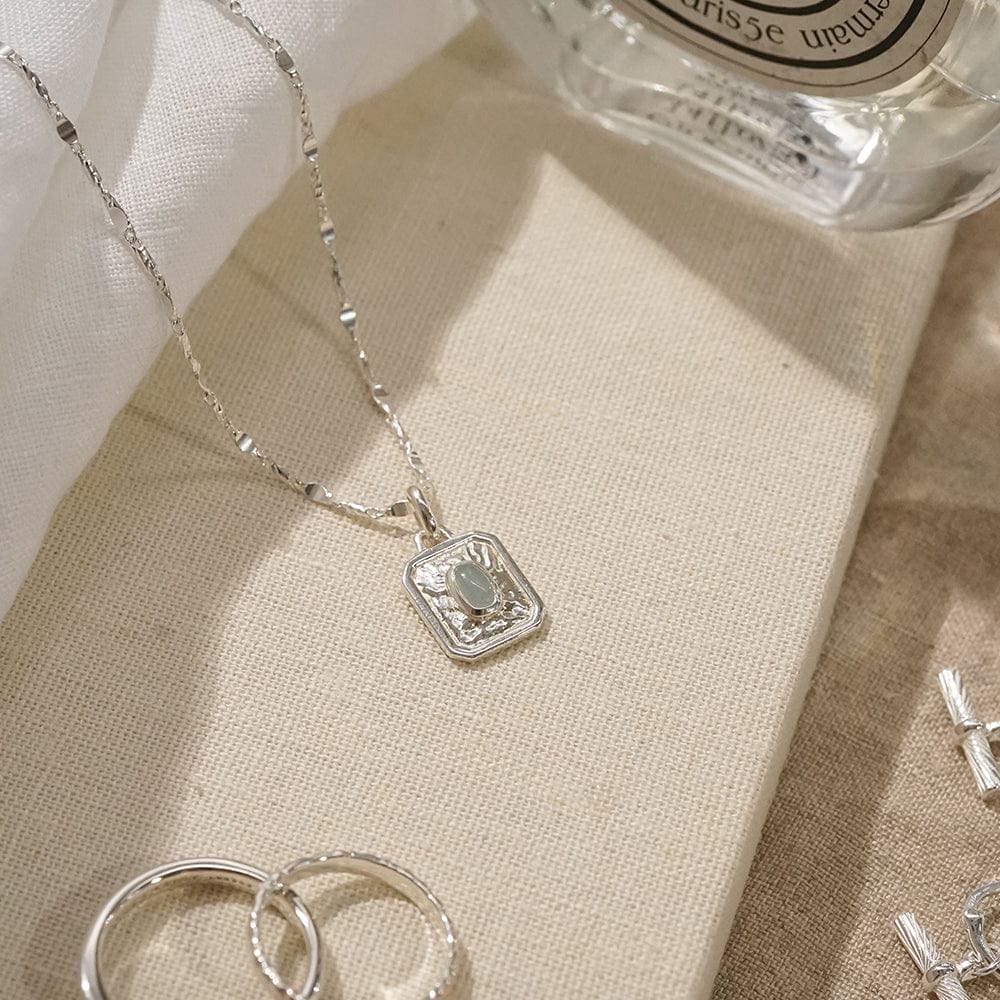 COURAGE TRANQUILLITY CLARITY Make your day a little brighter with this 100% recycled sterling silver birthstone necklace. Once used as a protective stone by those at sea, aquamarine is known as a symbol of hope and happiness. The perfect finishing touch for any March baby's stack.