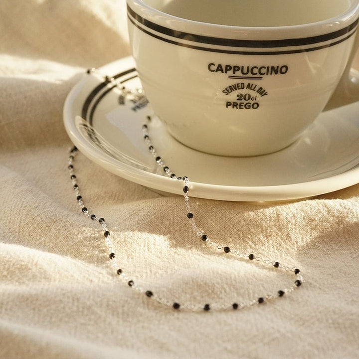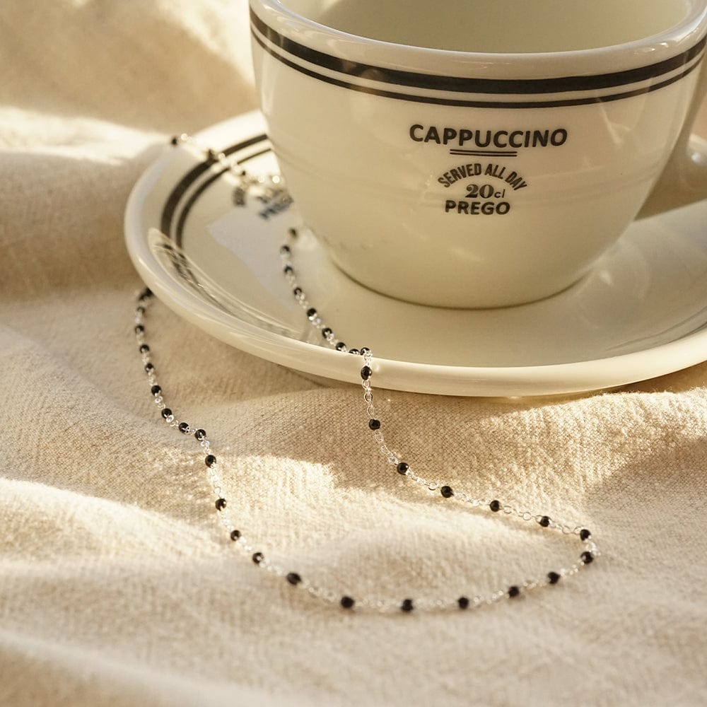 Treasures Black Beaded Necklace 925 Sterling Silver