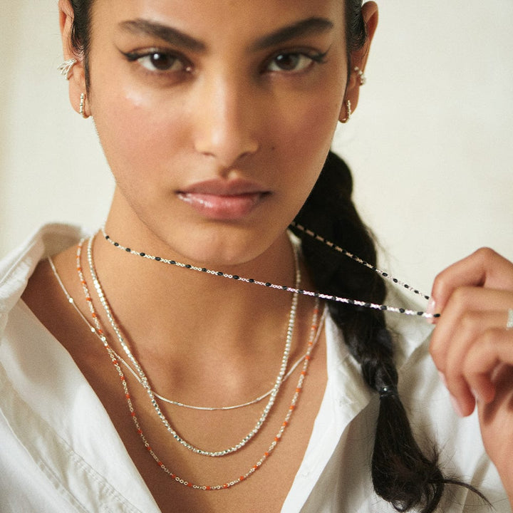 The new layering piece you've been waiting for. Featuring small black enamel beads on a fine 18ct gold plate chain, this jewellery box essential elevates any outfit. Pair with a statement pendant and layers of chains.