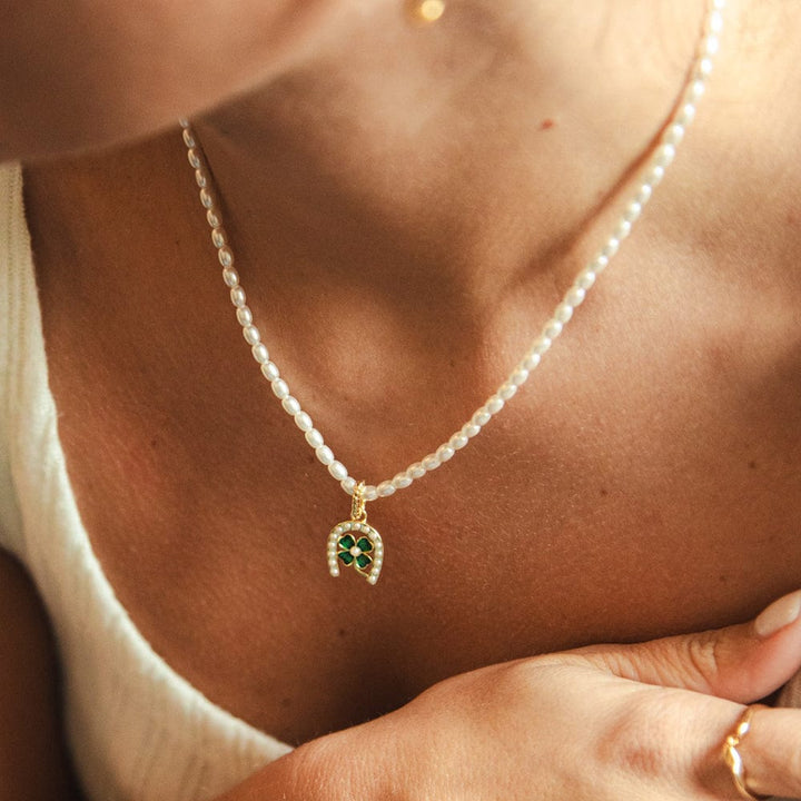 Shrimps Clover Charm Pearl Necklace 18ct Gold Plated