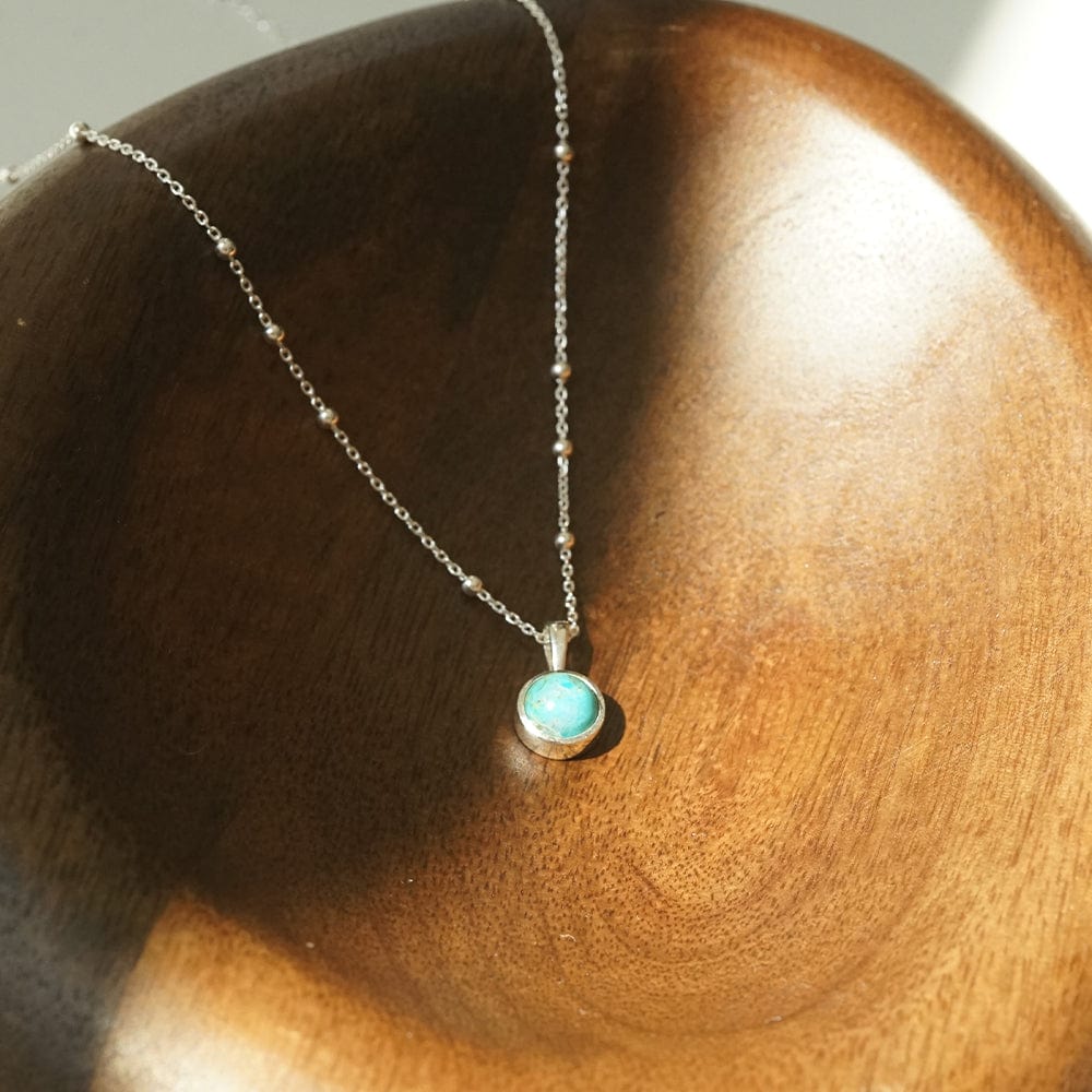 LOVE CALMNESS COMPASSION The bright turquoise stone is said to focus it's energy on self love and acceptance. Hung on an adjustable bobble chain, this gemstone necklace is perfect piece to give yourself or a loved one for any occasion.
