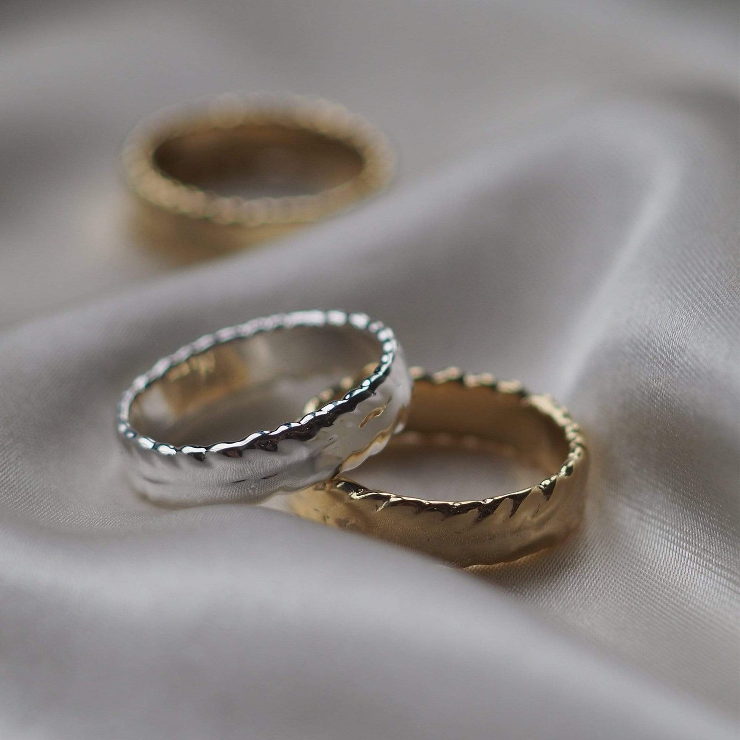 Statement stacking never looked so good. The Estée Lalonde Thea Chunky Stacking Ring features a wide band, rippled with a beautiful, poured gold texture throughout. Pair with the Thea Stacking Ring to complete this everyday ring stack.