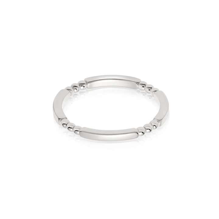 Our Bar & Ball Stacking Ring is your must-have and you probably won't be able to stop at just one if we're being completely honest. This ring is crafted on sterling silver and features a geometric bead and bar texture for an elevated take on a simple yet chic stacking ring.