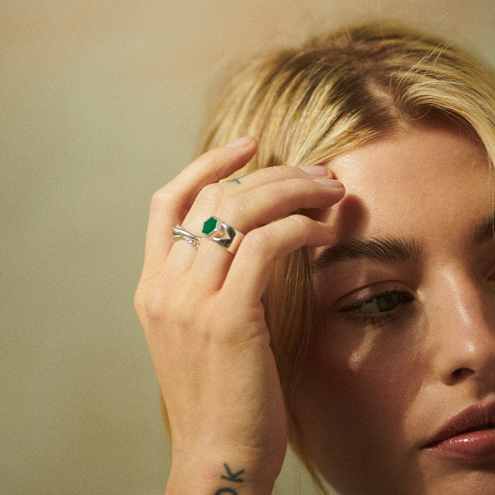 Featuring Green Onyx set on an 18ct gold plate band, this is a look good, feel-good piece to love forever. Pair with matching stacking bands for a gorgeous green moment or style alone for a subtle pop of colour. The perfect finishing touch to elevate any outfit.