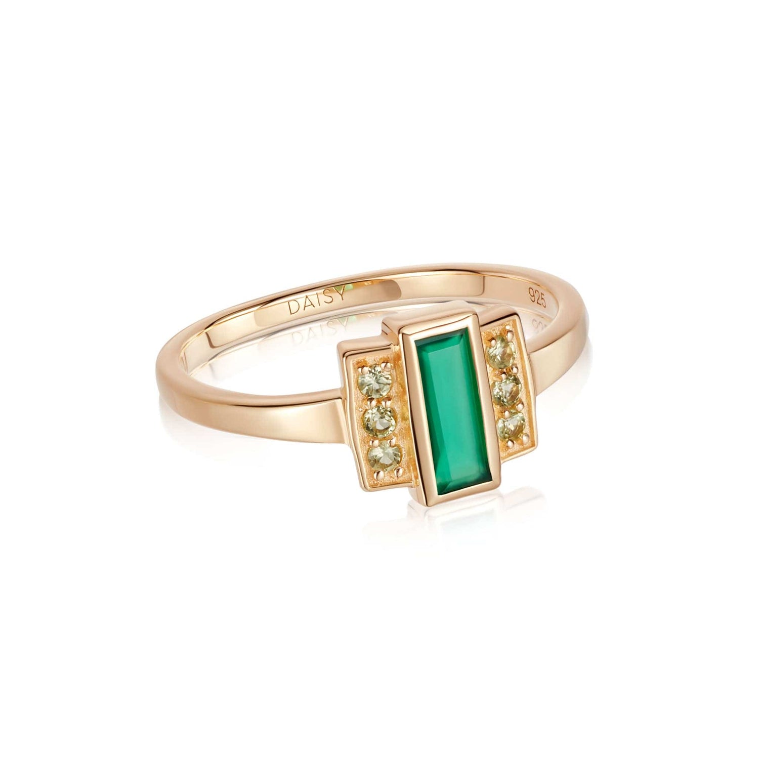 Beloved Green Onyx Baguette Ring 18ct Gold Plated