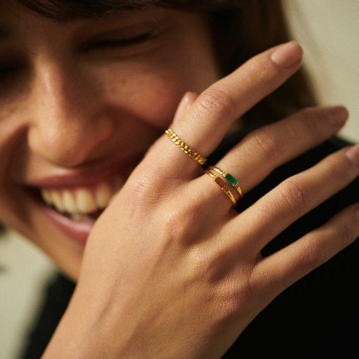 Beloved Fine Green Onyx Band Ring 18ct Gold Plated