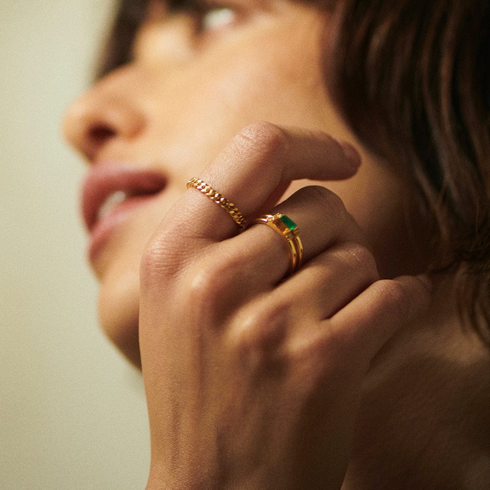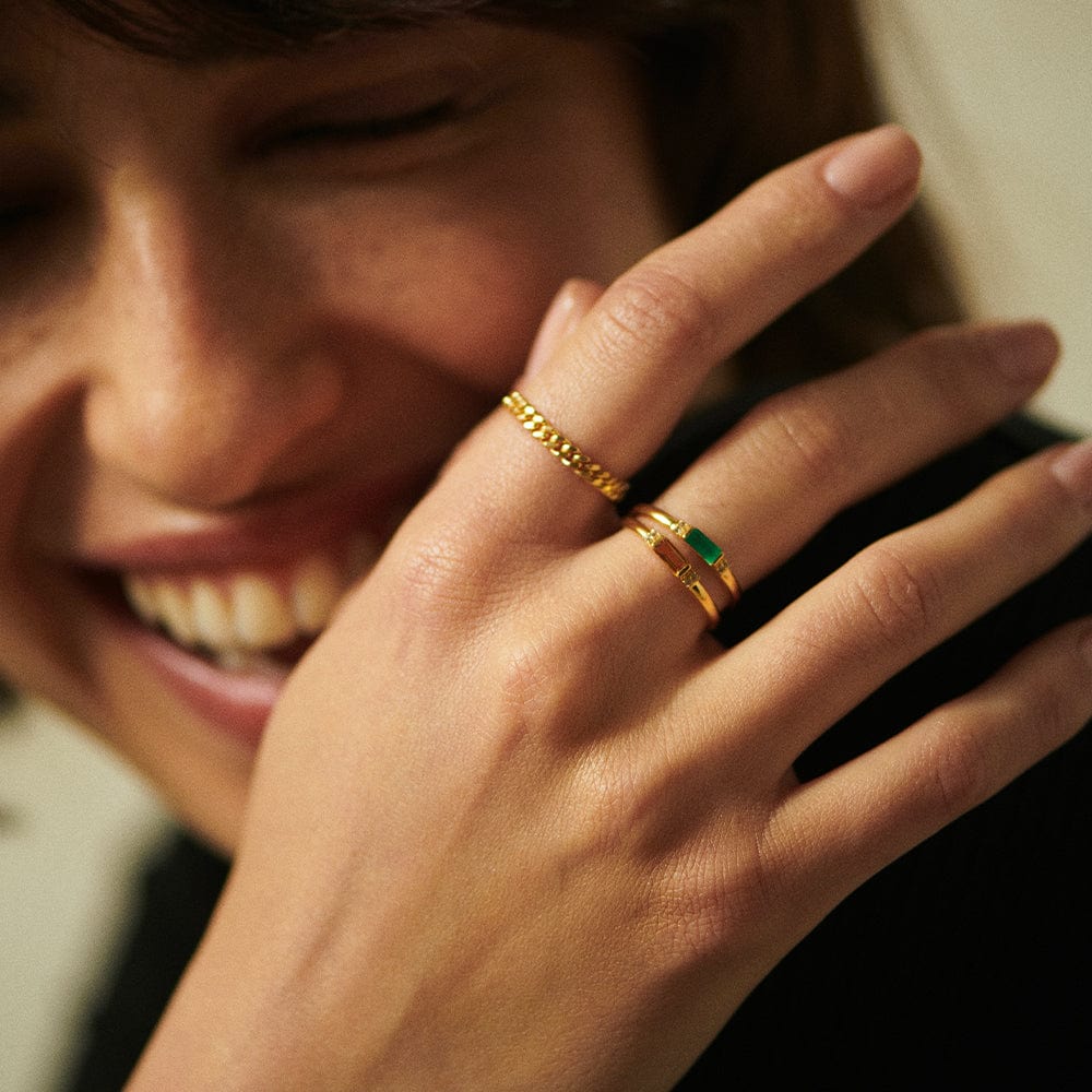 Symbolising strength and confidence the Beloved Fine Green Onyx Band Ring is a look good, feel-good piece to love forever. Set with Green Onyx and White Topaz, pair with contrasting stacking bands. We recommend the Citrine Band Ring well because... look at them.