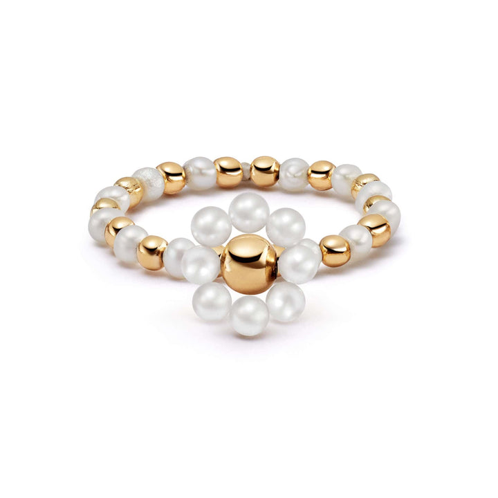 Shrimps Beaded Flower Ring 18ct Gold Plated