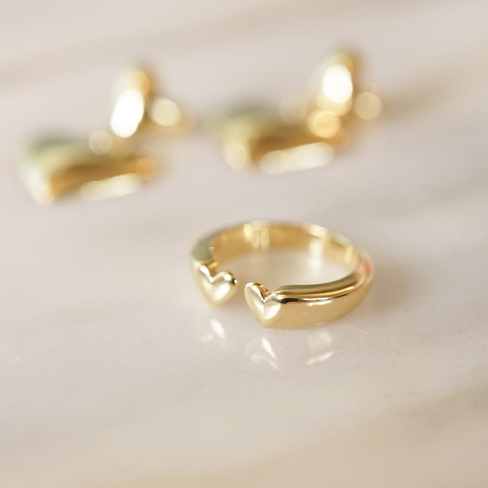 There's nothing half hearted about this ring. Featuring two hearts meeting in the middle it's a loving new take on the timeless signet. Stacked or styled solo, you won't want to take this cutie it off.
