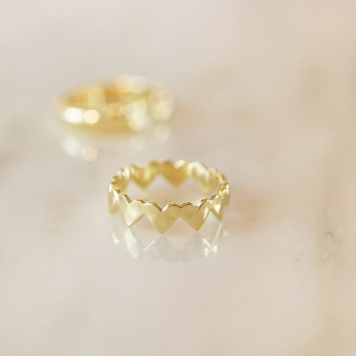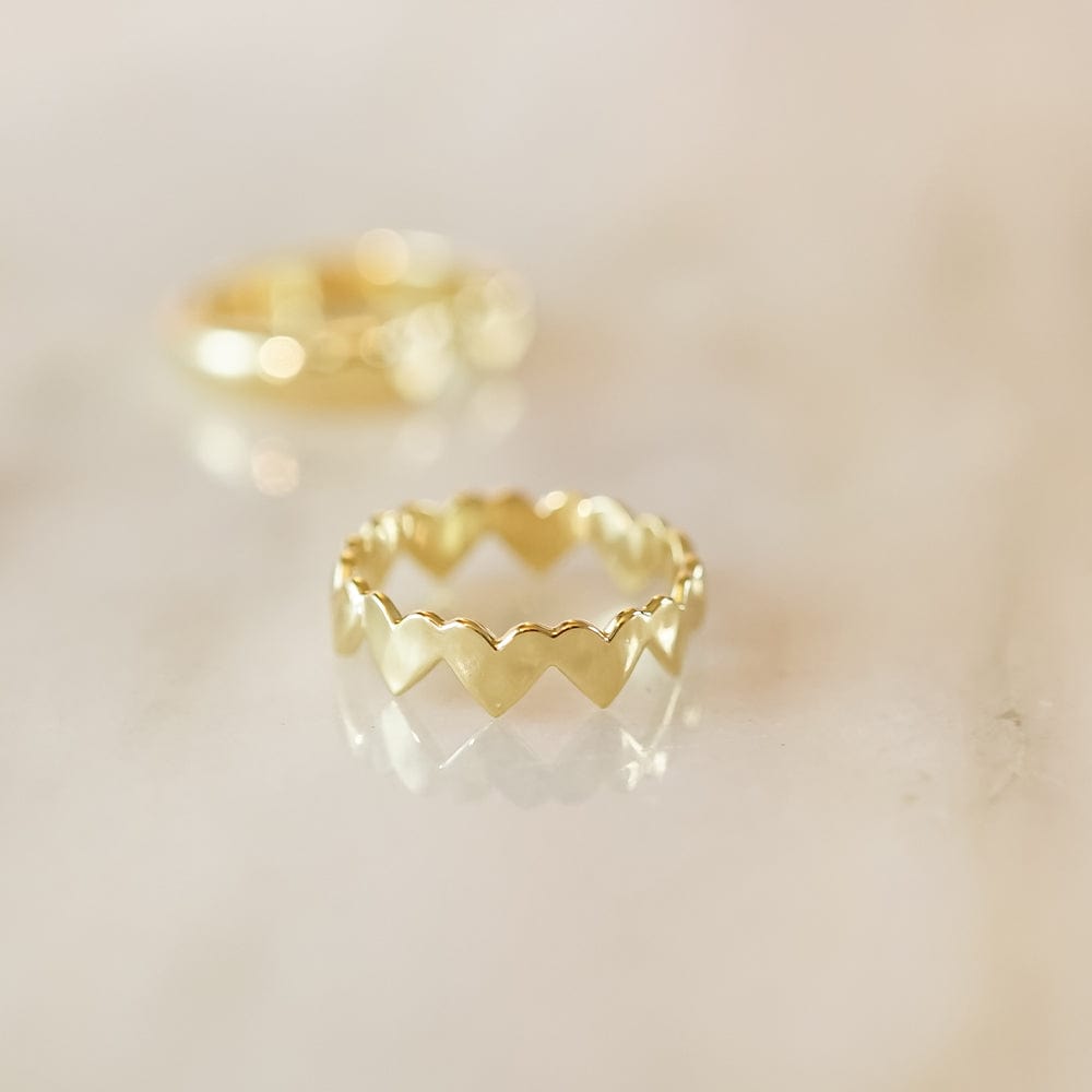 Spread the love all year round with this must-have band ring. Featuring a chain of hearts this sweetie is perfect for stacking. We heart it, do you?