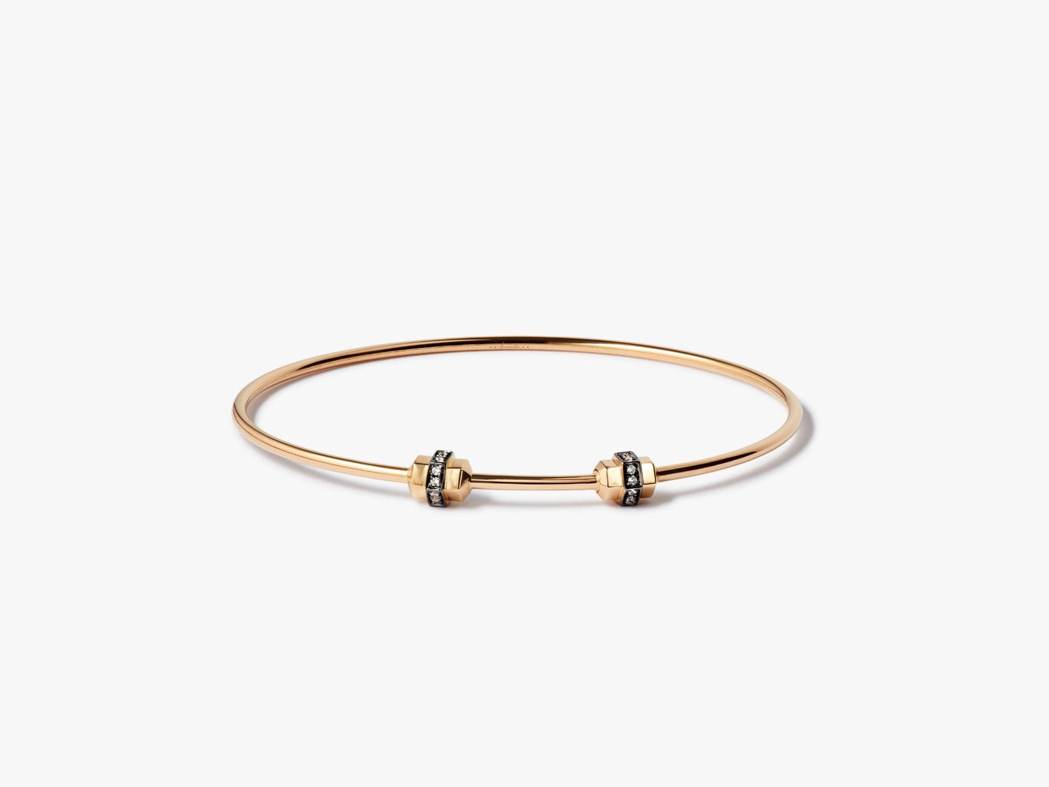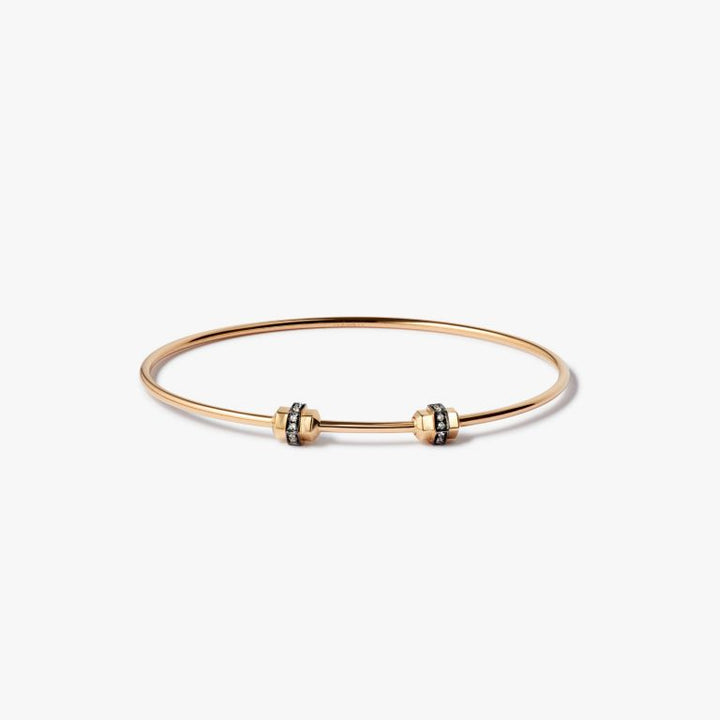 This Sapphire Small/Medium Charm Bangle by Annoushka reimagines the classic charm bracelet with minimalist finesse. Crafted in radiant 18k yellow gold, it features a sleek screw nut clasp set with 0.12ct white sapphires, adding a subtle sparkle. Wear it solo for a refined look or pair it with charms like the Small Heart or Initials for a personal narrative. A perfect foundation piece for building your charm collection.