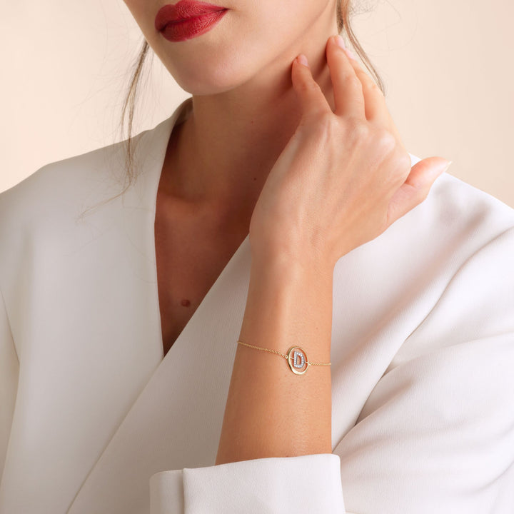 This Initials D Bracelet by Annoushka brings a sparkling sense of self to everyday jewelry. Featuring the letter 'D' adorned with 17 shimmering silver diamonds, it's crafted in 18k yellow gold and designed with Annoushka's signature attention to detail. A polished way to personalize your style or honour someone special.