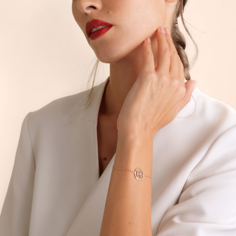 This Initials H Bracelet by Annoushka carries both delicacy and presence. With 17 sparkling silver diamonds forming the initial 'H,' it’s a quietly bold expression of identity. The refined gold chain and adjustable sizing make it a timeless piece that complements any look.