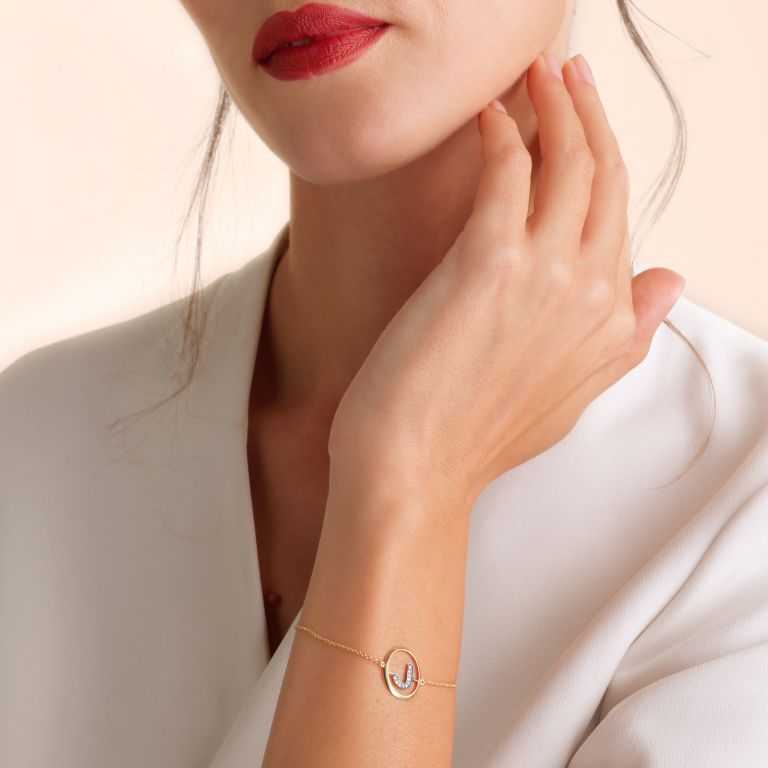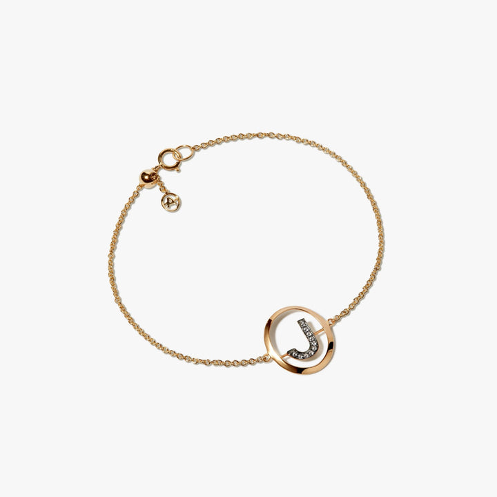 This Initials J Bracelet by Annoushka offers understated charm with a touch of sparkle. Featuring the letter 'J' hand-set with 10 silver diamonds, it’s a lovely piece to honour a name or memory. The bracelet’s sleek gold design makes it ideal for stacking or solo wear.