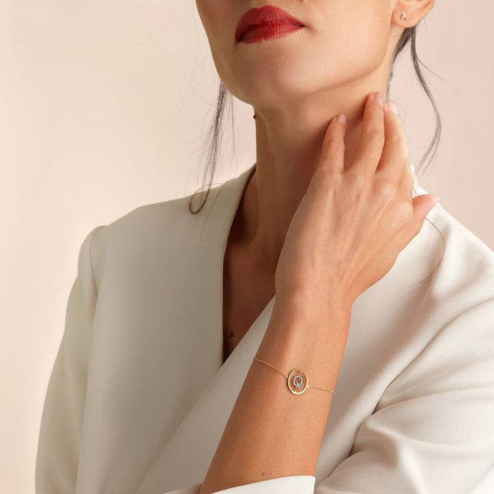 Handcrafted in 18k yellow gold with 16 silver diamonds totaling 0.09ct. Chain length: 18cm with sprung clasp and sizing slider.