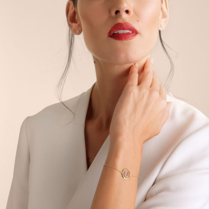 This Initials U Bracelet by Annoushka offers modern minimalism with heartfelt meaning. The letter 'U' is traced with 14 hand-set silver diamonds on a fine gold chain, creating a piece that’s elegant, understated, and completely personal.