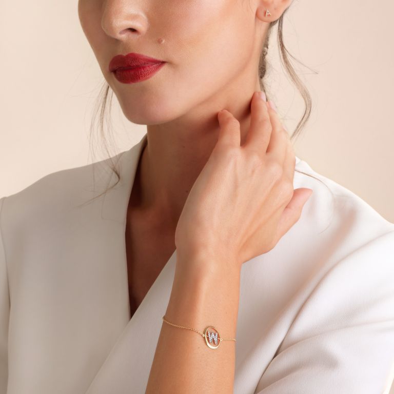 This Initials W Bracelet by Annoushka is a luminous, personal touch crafted in 18k yellow gold. The bold letter 'W' sparkles with 19 hand-set silver diamonds, creating a standout accent that’s both elegant and meaningful. Perfect for daily wear or a cherished gift.