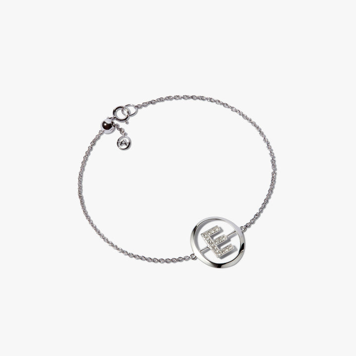 This Initials E Bracelet by Annoushka is a refined way to wear what matters. The 'E' initial sparkles with 16 silver diamonds, elegantly contrasted against a white gold chain. Perfect for everyday wear and ideal as a thoughtful, personalized gift.