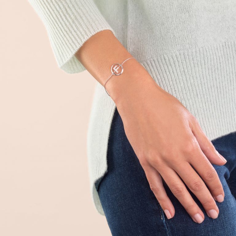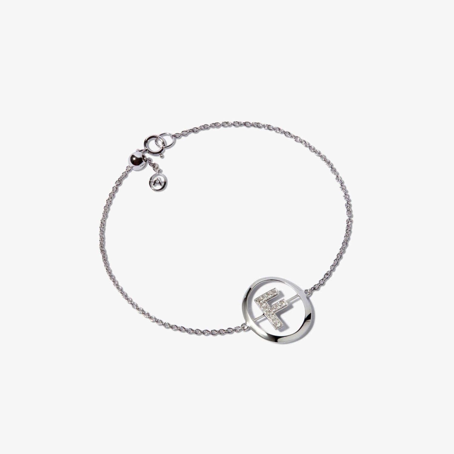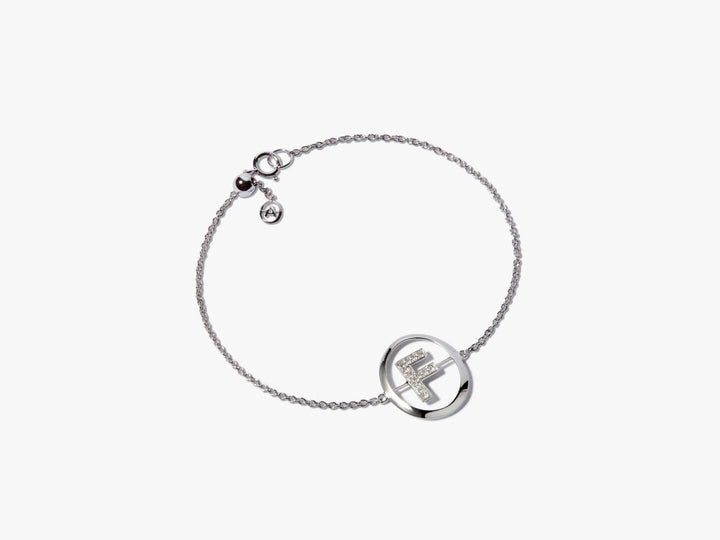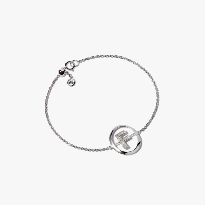 This Initials F Bracelet by Annoushka adds a delicate touch of personal style to your jewelry wardrobe. The initial 'F' is composed of 13 silver diamonds, catching the light with gentle sparkle on a polished white gold chain. Elegant, easy, and endlessly wearable.