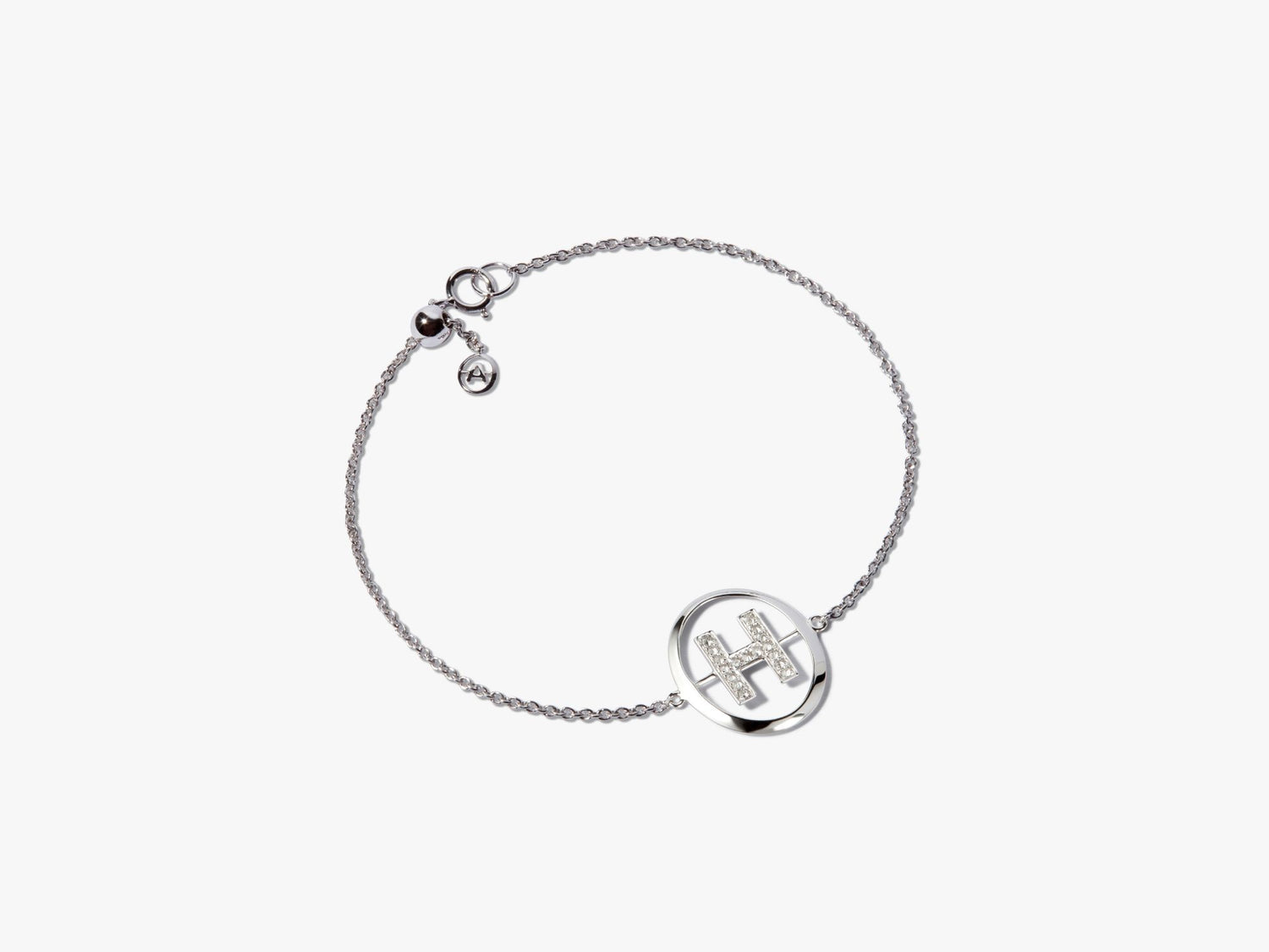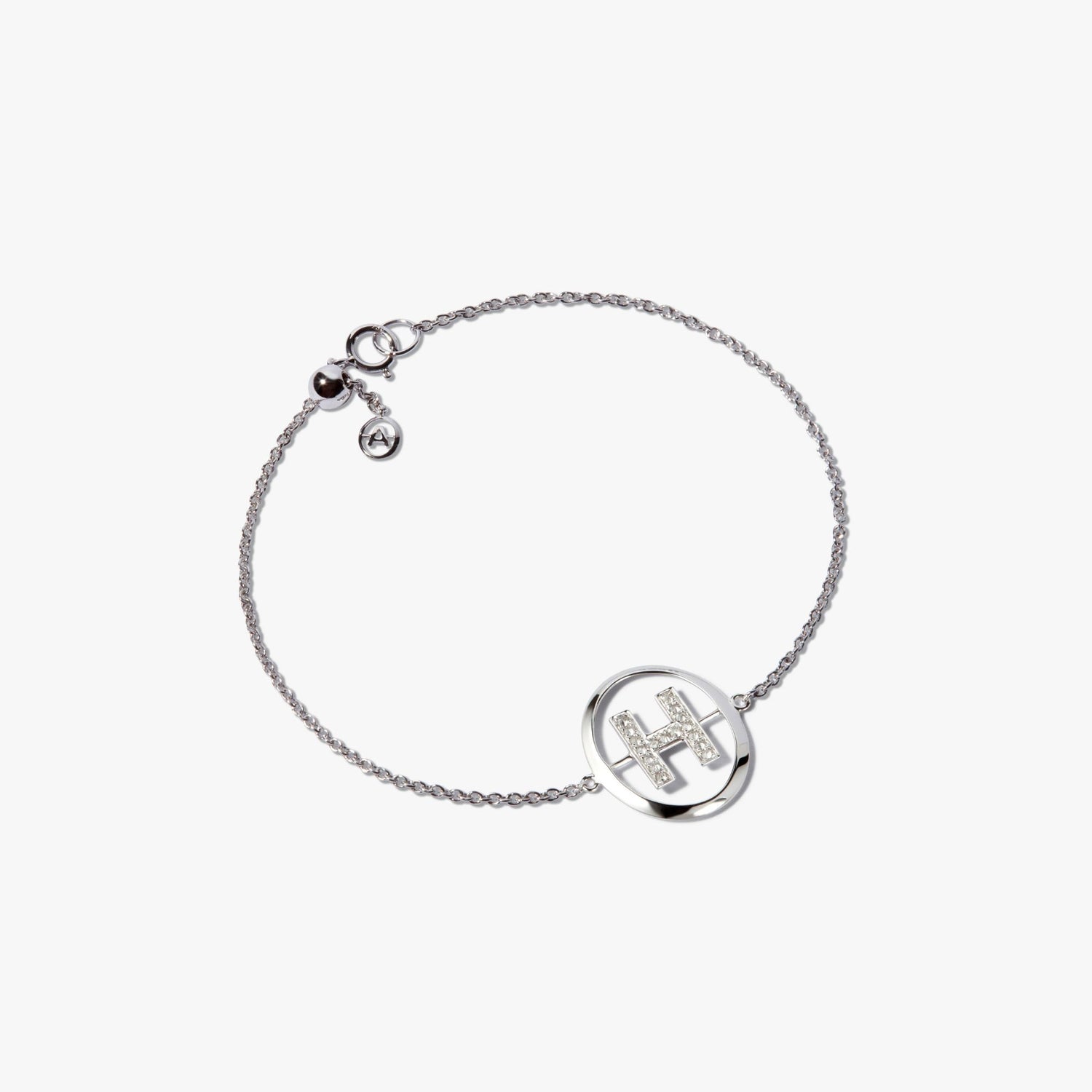 This Initials H Bracelet by Annoushka celebrates timeless sentiment through a contemporary lens. The letter 'H' is adorned with 17 hand-set silver diamonds, glowing softly on the refined 18k white gold chain. A polished piece for gifting or personal wear.