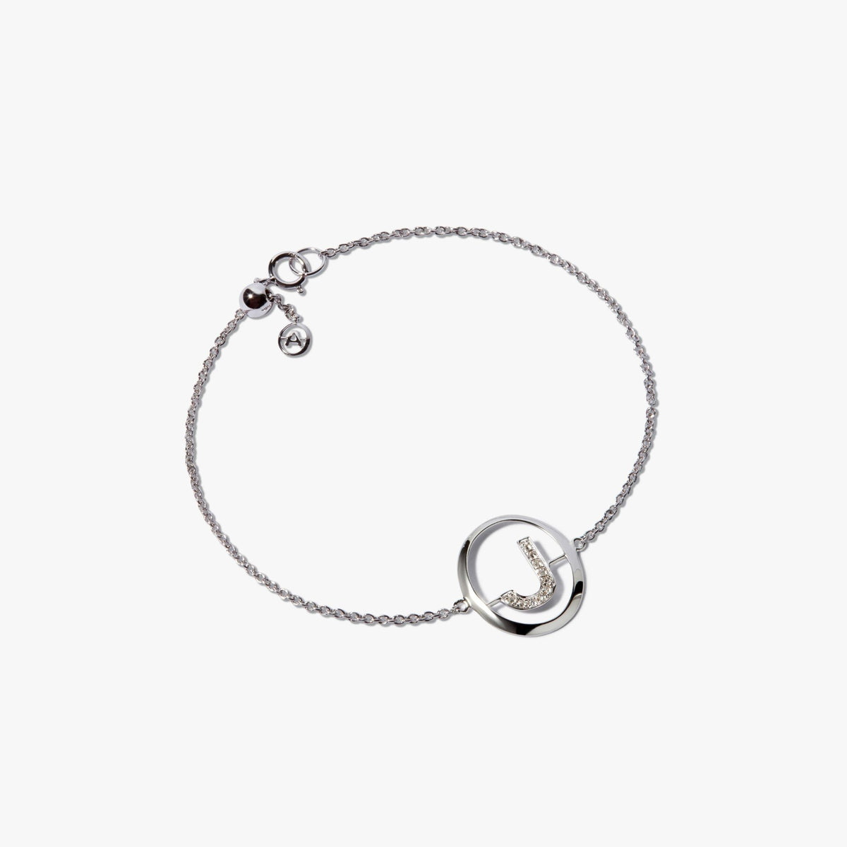 This Initials J Bracelet by Annoushka is a light and elegant tribute to identity. Featuring 11 silver diamonds that form the letter 'J,' it adds just the right amount of sparkle to a minimal white gold chain. Ideal for everyday symbolism and subtle layering.