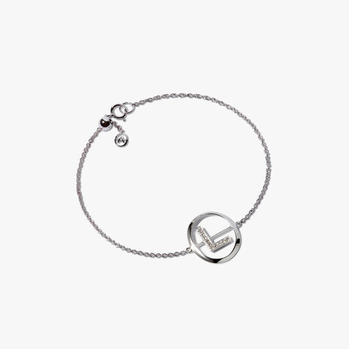 This Initials L Bracelet by Annoushka is a softly gleaming tribute to love and identity. The initial 'L' is set with 10 silver diamonds, adding a graceful flicker of light to the refined white gold bracelet. A versatile favorite for daily wear or gifting.