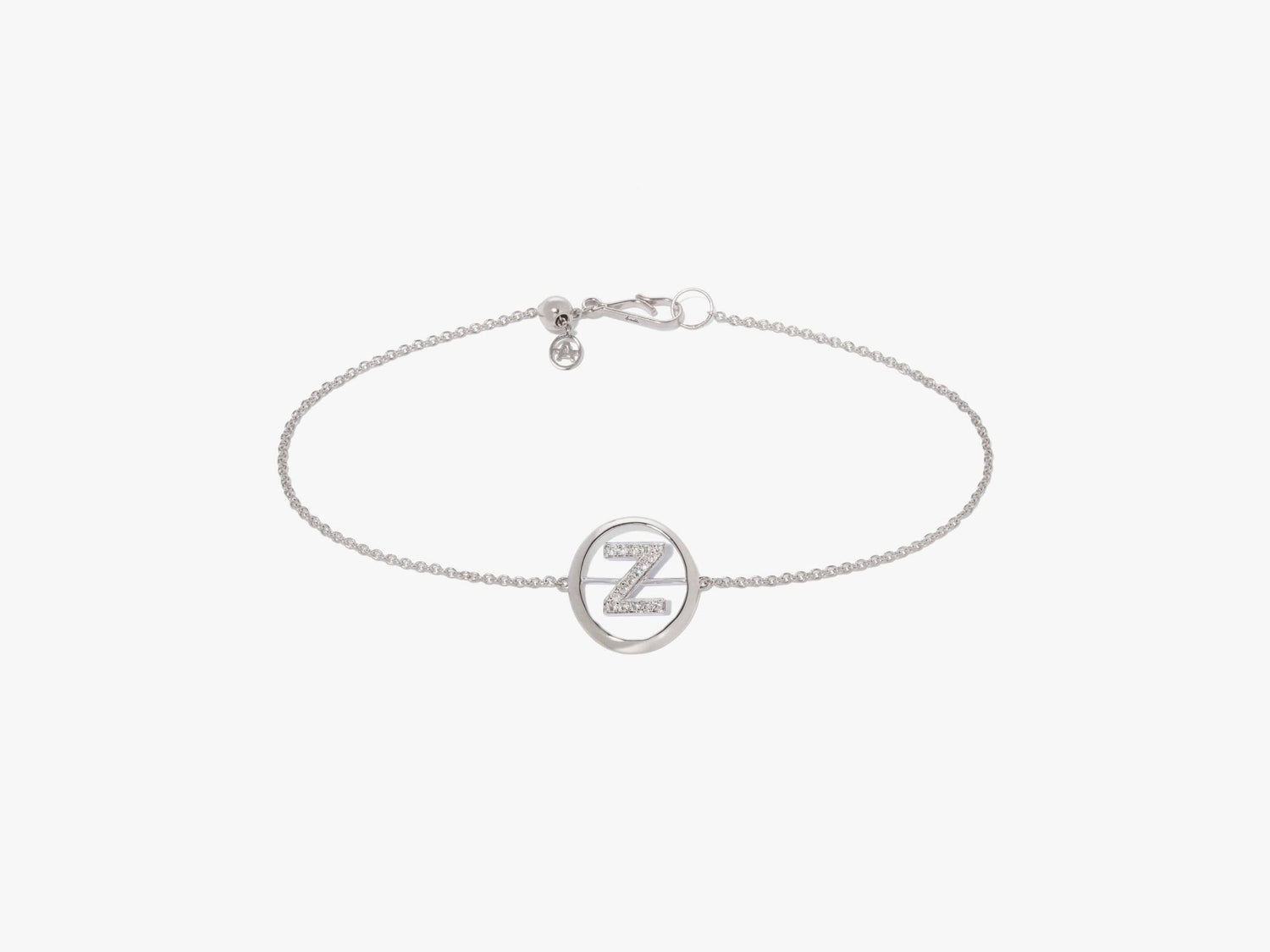 This Initials Z Bracelet by Annoushka speaks to those who seek a meaningful and sophisticated statement piece. The shimmering 'Z' initial—elegantly encrusted with diamonds—sits at the heart of this versatile design. Its chic, adjustable fit and classic silhouette make it a staple for layering or wearing solo. It’s an elevated expression of identity, designed to carry personal significance with luxurious ease.