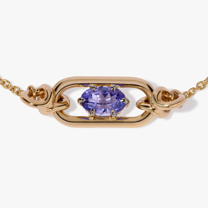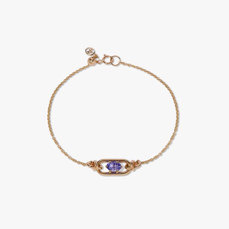 This Gem Set Tanzanite December Bracelet by Annoushka channels wisdom and dignity with its vibrant tanzanite centerpiece. Made from solid 14k yellow gold, the bracelet showcases the gemstone within the iconic Knuckle link, complemented by two knuckle joints for flexible wear. The adjustable sizing slider allows a perfect fit, ideal for layering or solo wear.