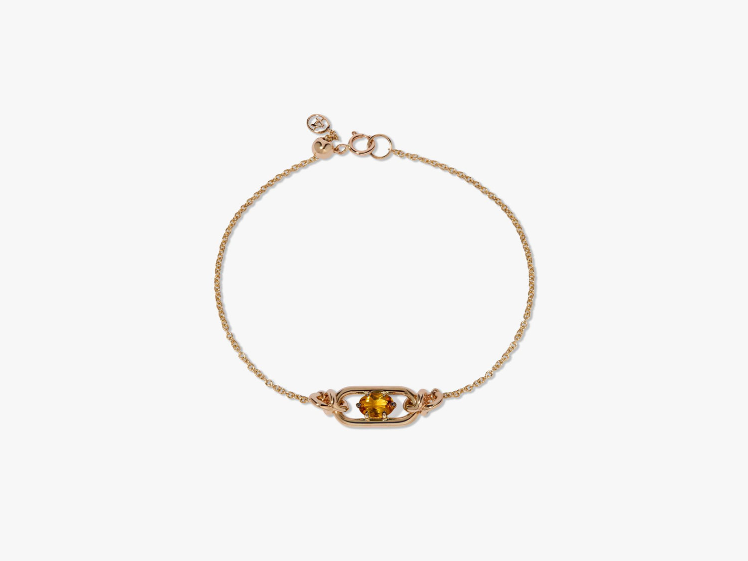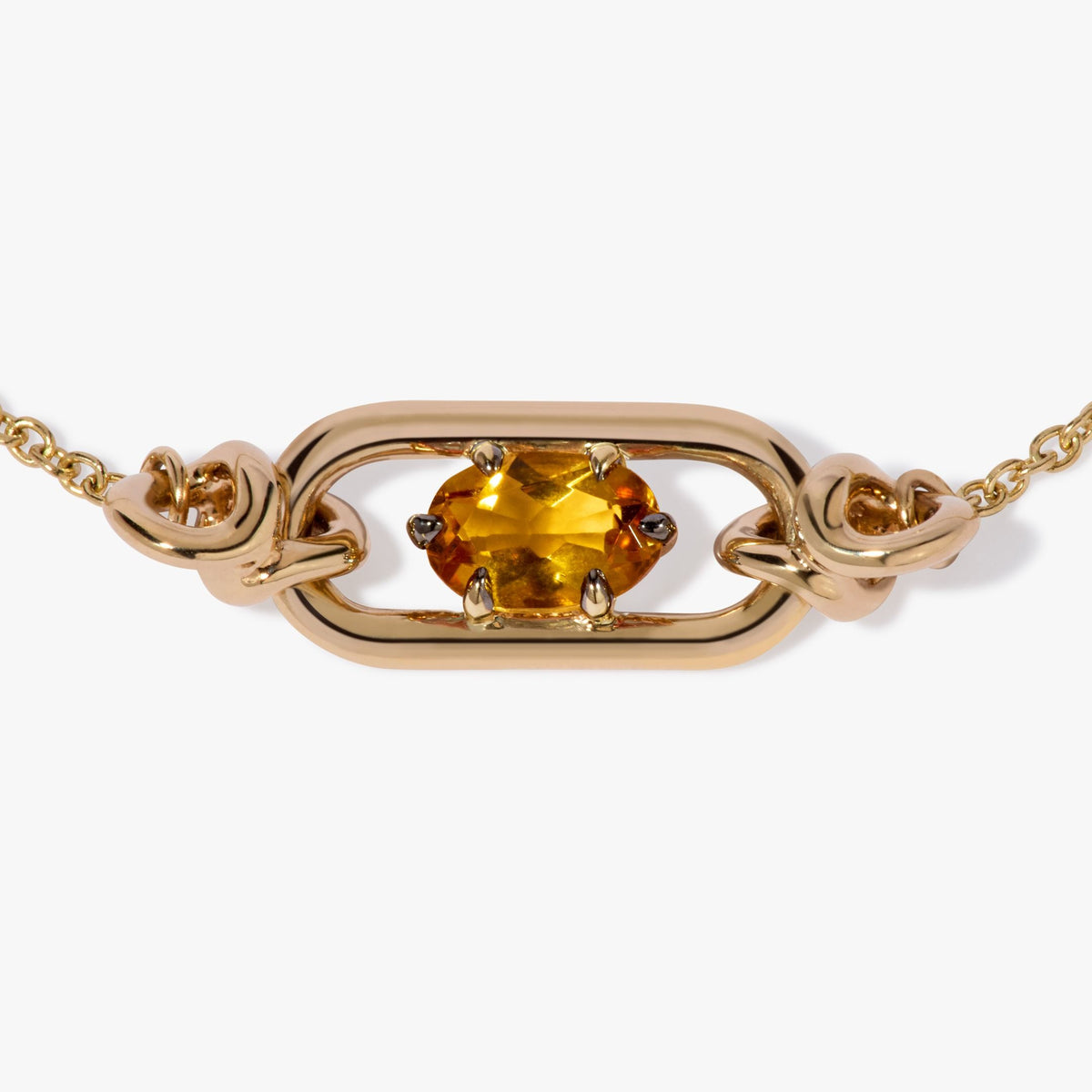 This Gem Set Citrine November Bracelet by Annoushka radiates warmth and prosperity. The solid 14k yellow gold bracelet features a central citrine gemstone within the brand’s signature Knuckle link, framed by two knuckle joints for movement and comfort. The adjustable sizing slider enables tailored wear, making it a radiant choice for everyday elegance.