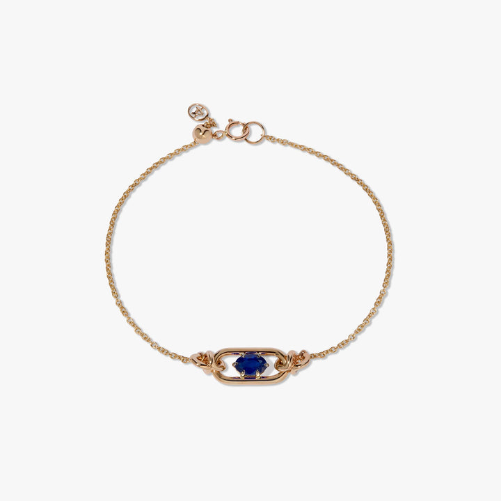 This Gem Set Sapphire September Bracelet by Annoushka embodies sincerity and faithfulness with its deep blue sapphire centerpiece. Crafted in solid 14k yellow gold, the sapphire is set within the brand’s signature Knuckle link, flanked by two knuckle joints for flexible wear. Adjustable sizing slider offers a custom fit, perfect for stacking or wearing alone.