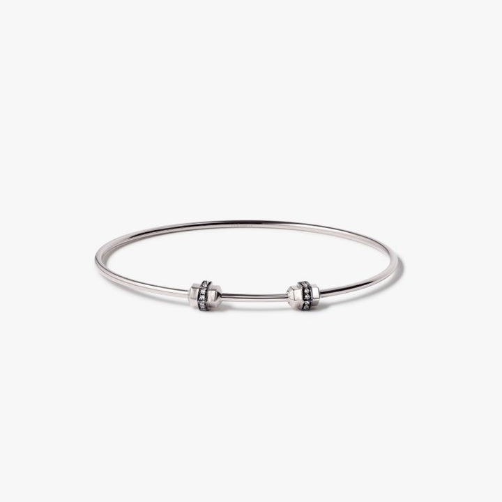 This Sapphire Small/Medium Charm Bangle by Annoushka brings delicate charm in 18k white gold. Set with 0.12ct white sapphires and featuring a screw nut clasp, it measures 47mm x 57mm. Perfect for standalone wear or layered with other charms, it’s also available in Medium/Large size.