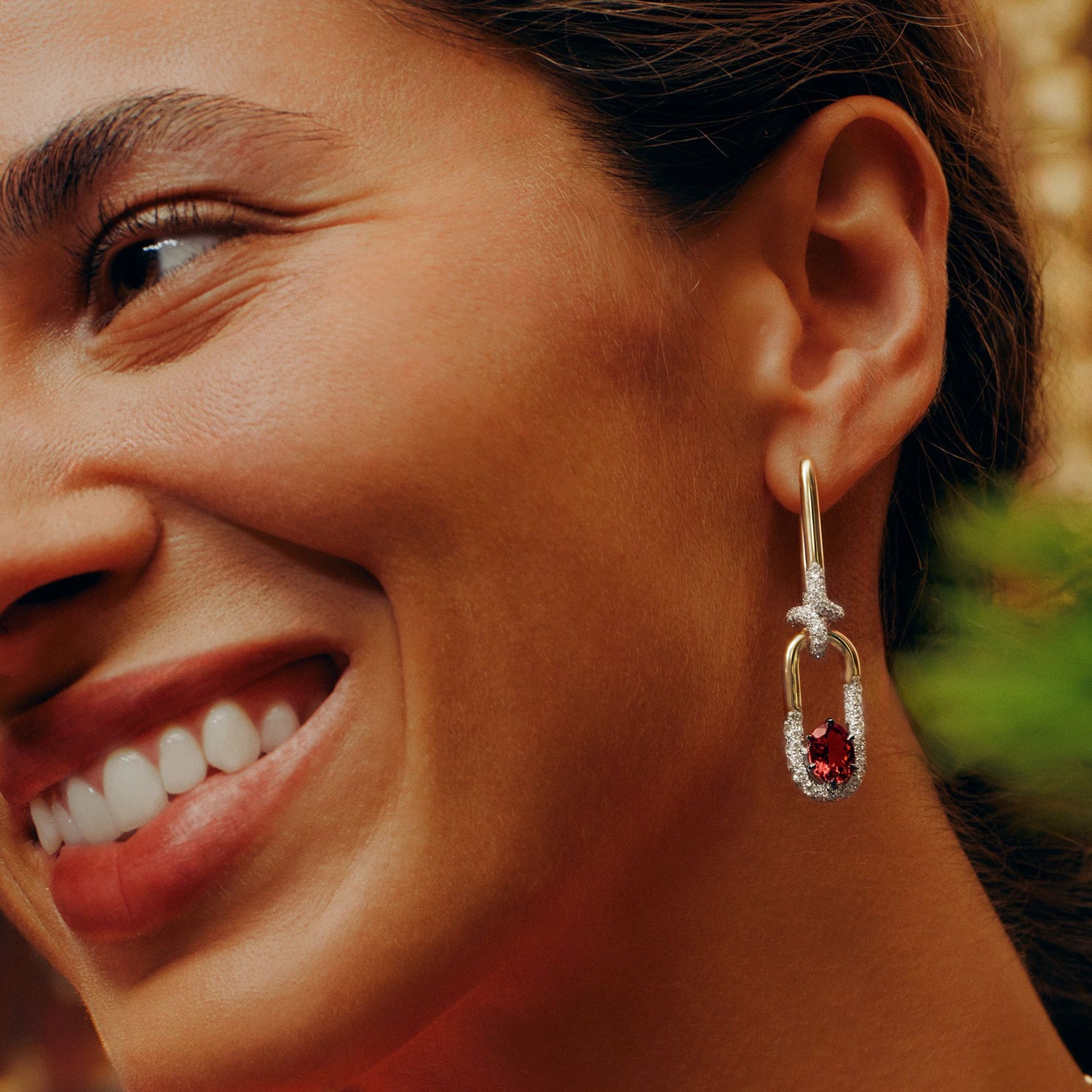 These Knuckle Dust Garnet & Diamond Earrings by Annoushka are a vivid expression of emotion and elegance. Featuring double hoops adorned with dazzling diamonds and rare colour-changing garnets, they embody friendship, loyalty, and deep passion. A natural complement to the matching bangle, they’re ideal for meaningful self-expression with refined impact.