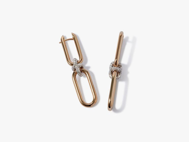 These Knuckle Dust Double Hoop Earrings by Annoushka are a bold yet versatile take on contemporary elegance. Crafted in yellow and white gold and linked with an innovative joint, they can be split and worn asymmetrically or dressed up with detachable earring drops. A creative foundation for mixing and matching.