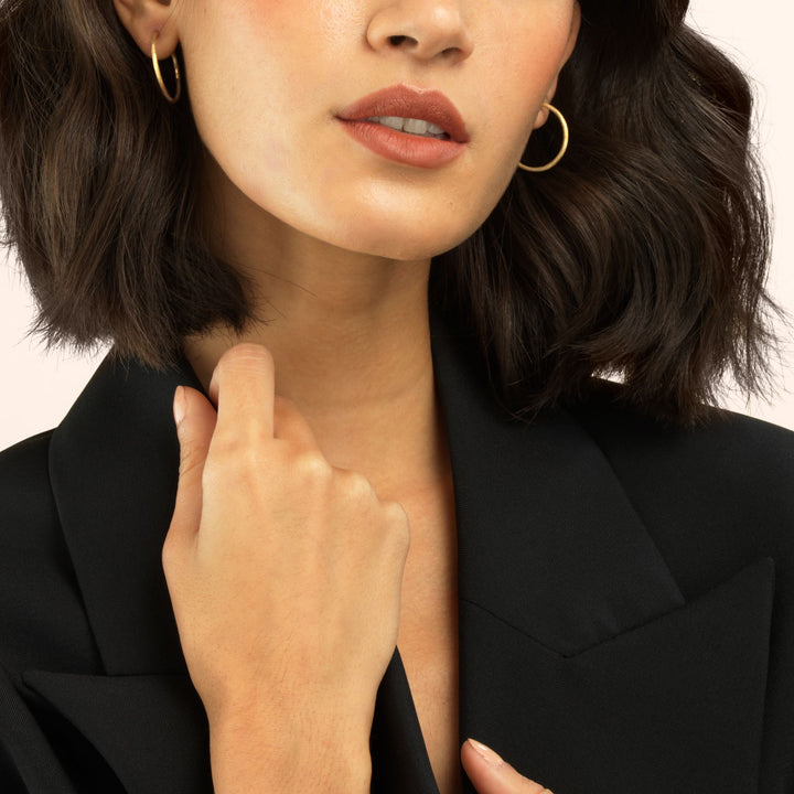 These Hoopla Medium Hoop Earrings by Annoushka are an elevated classic designed for effortless styling. Handcrafted in textured 18k yellow gold, their sculptural curve offers understated luxury that suits every mood and moment. Perfect alone or worn alongside studs and mini hoops, they’re a staple of timeless versatility.