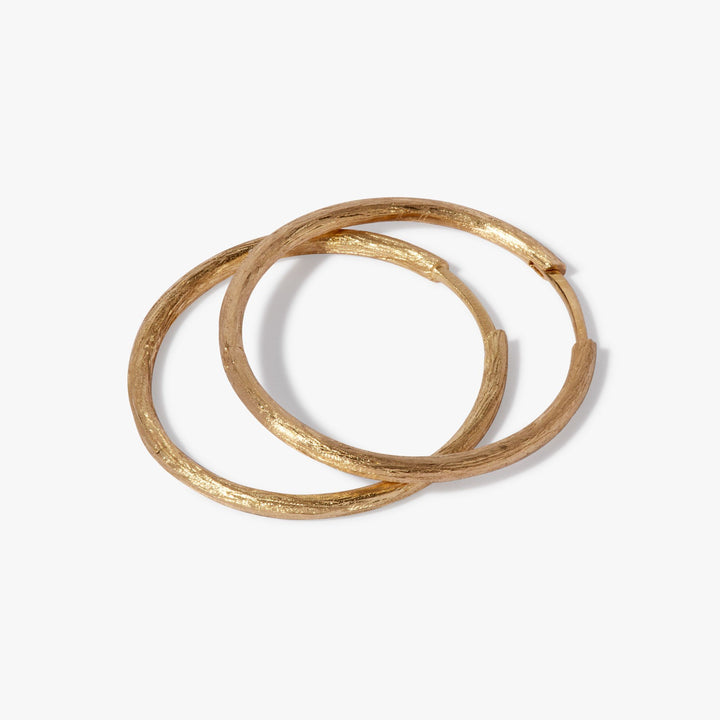 Handcrafted in solid 18k yellow gold with a textured finish. Sold as a pair. Dimensions not specified.