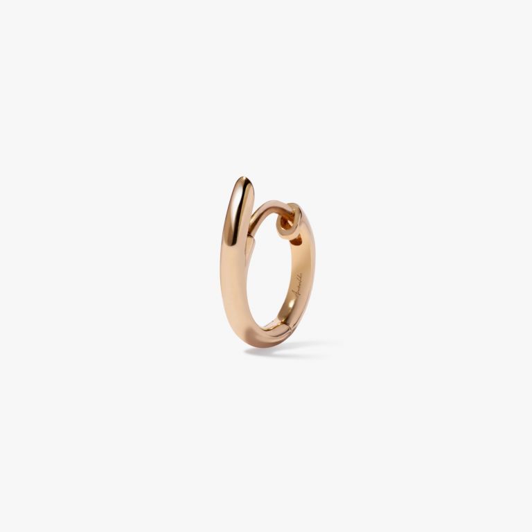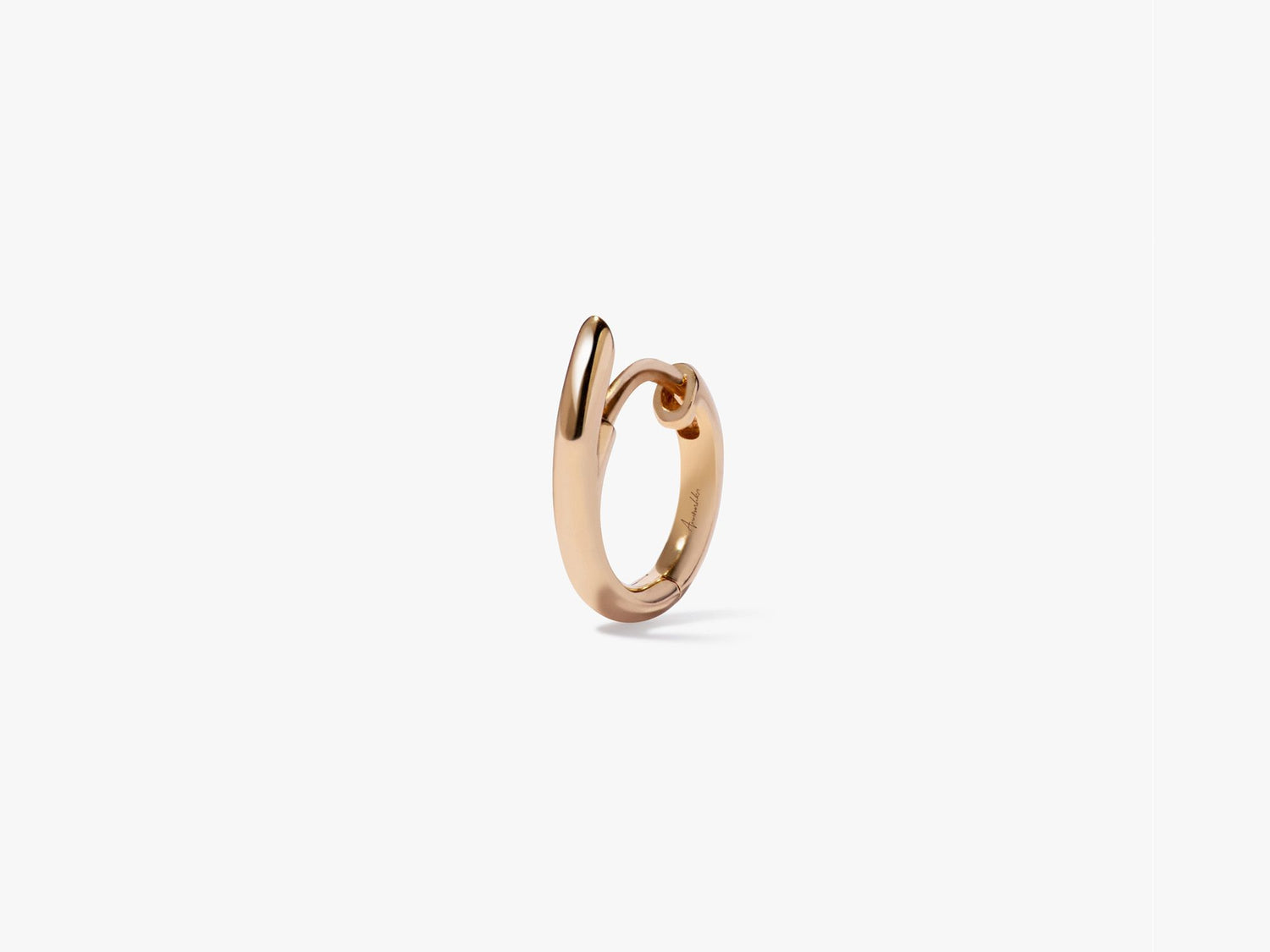 This Six Hoop Earring by Annoushka is a smart, sculptural twist on a classic. Crafted in solid 14k yellow gold with a glossy high-polish finish, its 6-shaped silhouette masks piercing asymmetries while adding a sleek, modern accent. Wear it solo for understated cool or style with detachable drops for dynamic layering.