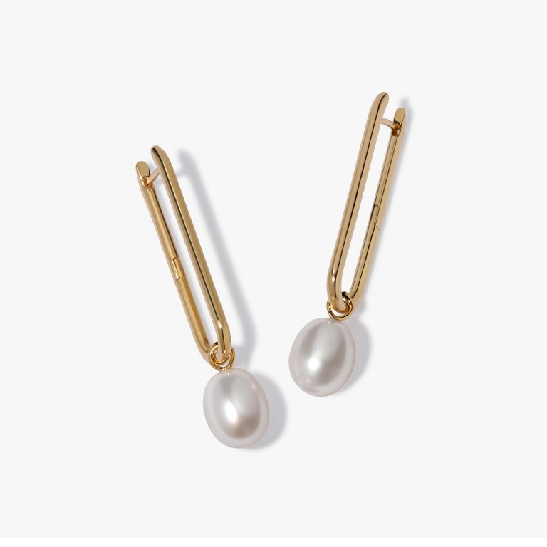 These Knuckle Pearl Long Earrings by Annoushka fuse artisanal detail with elegant utility. Combining the Knuckle Long Hoops with luminous Baroque Pearl Drops, they bring a sophisticated twist to classic pearl styling. Handcrafted in 14k yellow gold, the earrings are designed for transformation—swap out the hoops or drops to suit your mood. A refined addition to the Mix & Match collection.