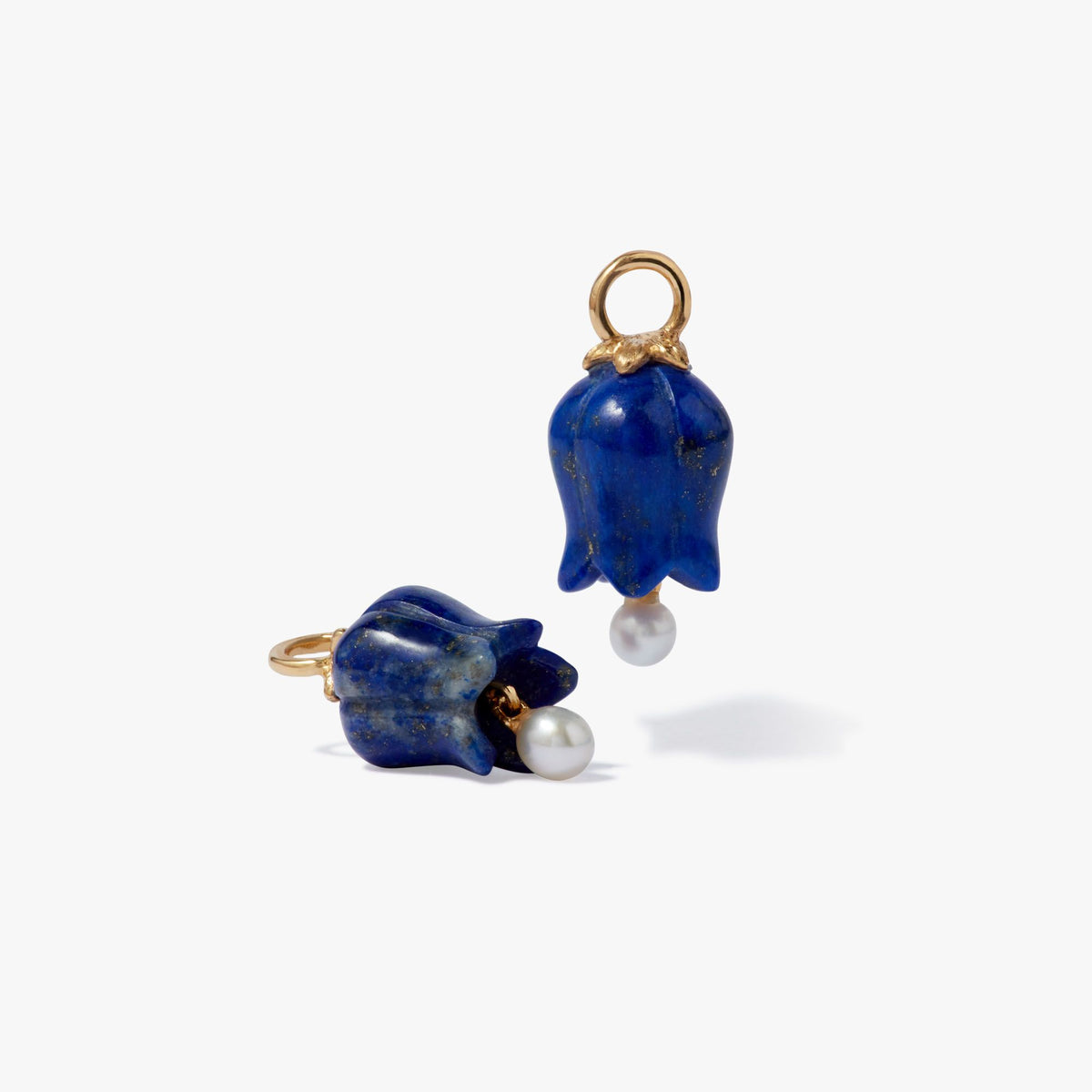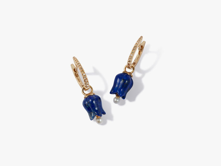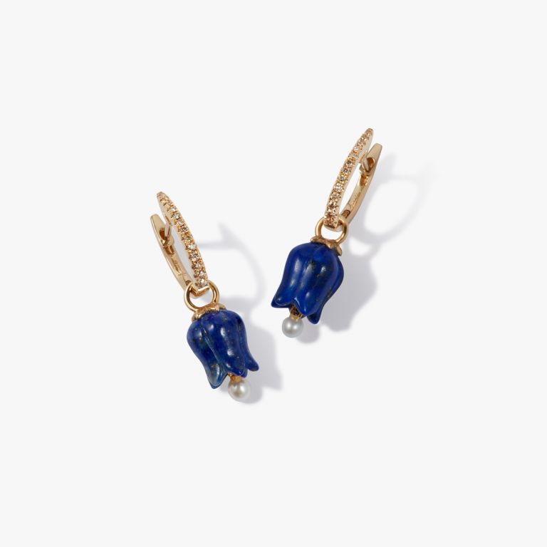 These Tulips Diamond Earrings by Annoushka bloom with meaning, embodying themes of love, new beginnings, and prosperity. The lapis lazuli tulip drops, set with tiny briolette pearls, sway gently from sparkling diamond hoops—offering texture, color, and movement. Whether worn together or mixed and matched with other elements from the interchangeable earrings range, they bring playful elegance and symbolic beauty to any look.