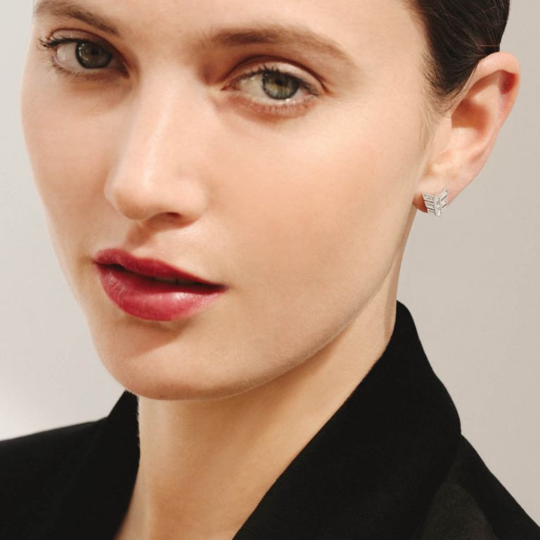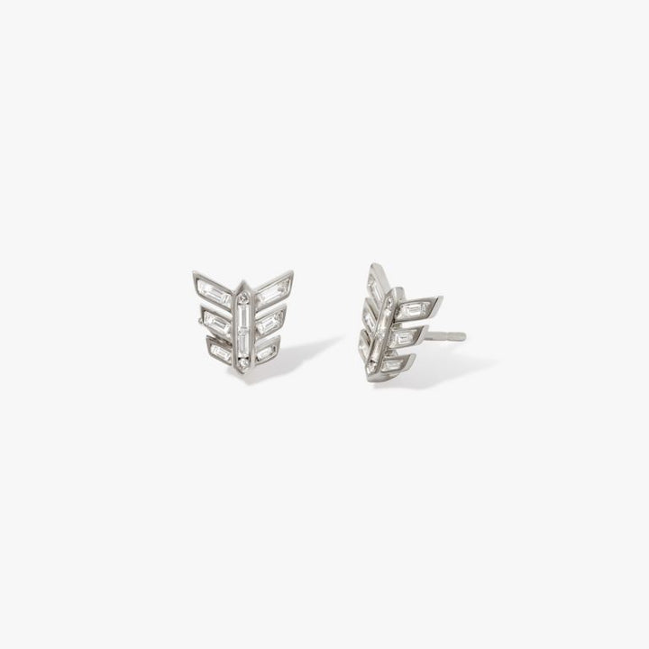 These Flight Feather Stud Earrings by Annoushka—in radiant white gold and diamonds—embody graceful movement and timeless style. A signature interpretation of Art Deco glamour, they symbolise freedom and individuality. Their hidden hooks invite infinite styling options, pairing effortlessly with detachable drops for a look that’s both contemporary and versatile.