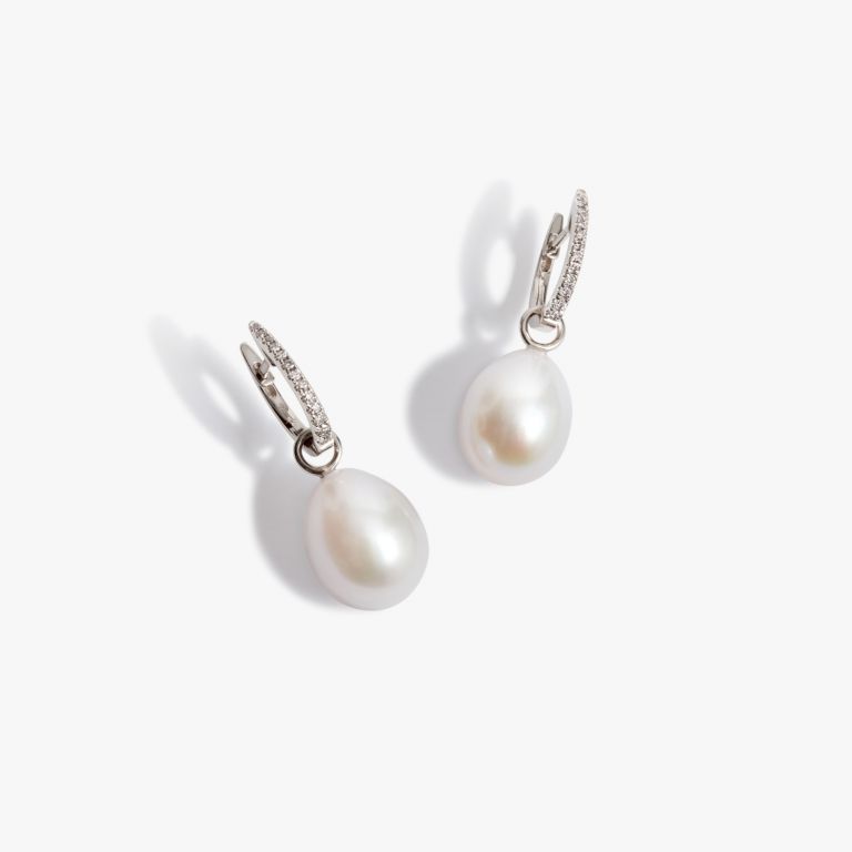 These Annoushka Favourites Pearl Earrings update the classic pearl with a modern edge. Crafted in 18k white gold, diamond Eclipse Hoops hold detachable pearl drops with warm lustre. Globally admired, including by Royalty, they invite creative styling with other interchangeable earrings from the collection.