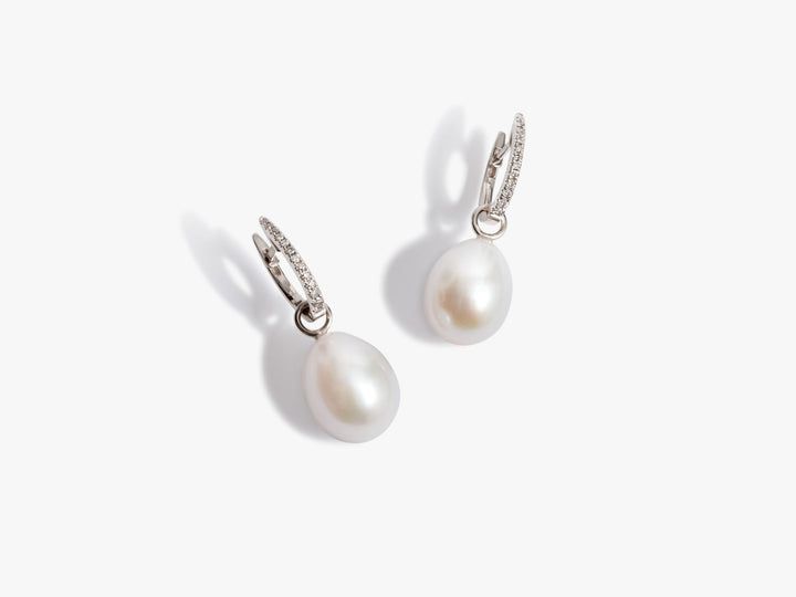 Handcrafted in 18k white gold with diamonds and detachable pearl drops. Interchangeable design.