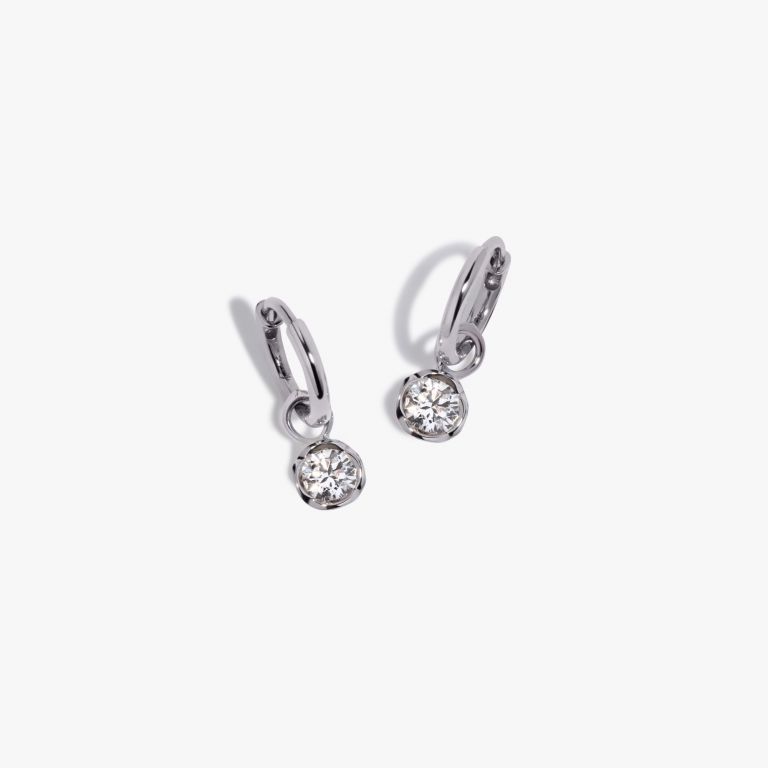 Handcrafted in 14k and 18k white gold with 0.50ct diamond drops. Detachable drops with organic cup setting.