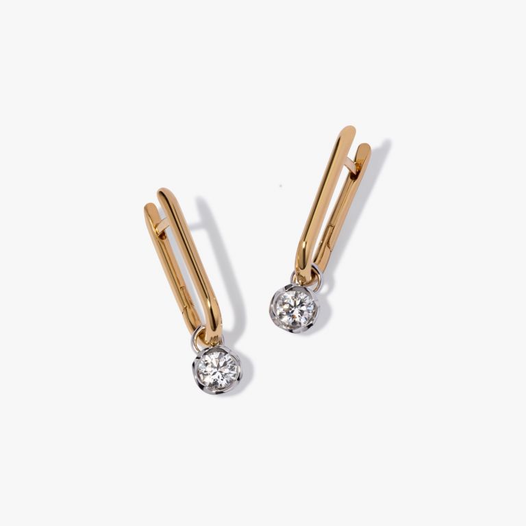 Style Notes: These Knuckle & Whoopsie Daisy 0.50ct Diamond Earrings by Annoushka (yellow and white gold) combine warm and classic tones. Featuring 0.50ct solitaire diamond drops paired with Knuckle hoops, designed for playful mix-and-match styling.